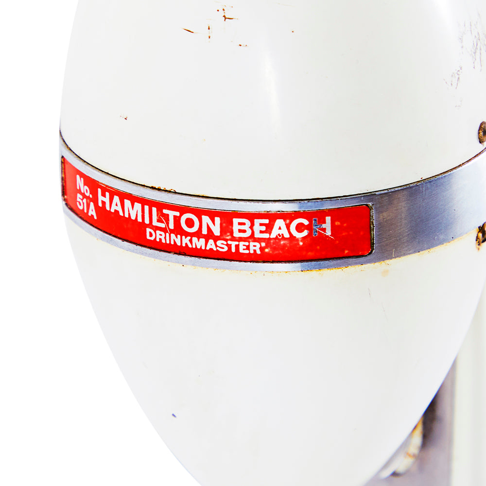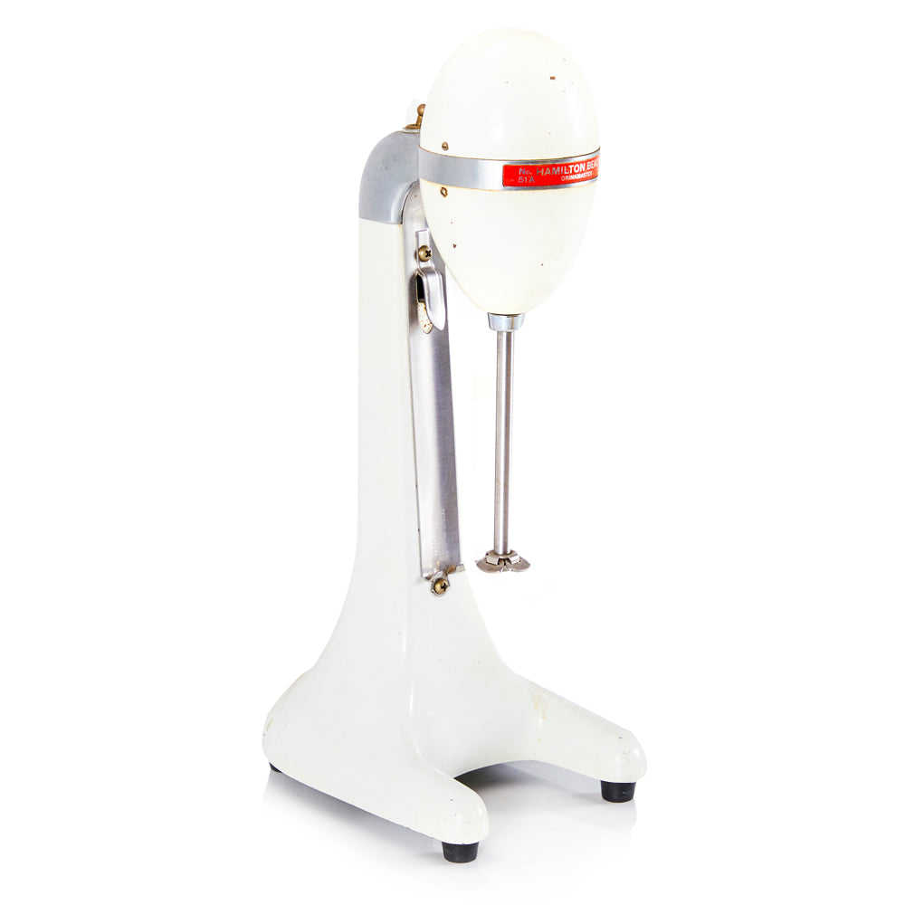 Details: Vintage white Hamilton Beach 'Drinkmaster' for milkshakes and other blended beverages Dimensions: 15" H x 5" W x 7" D Quantity: 1