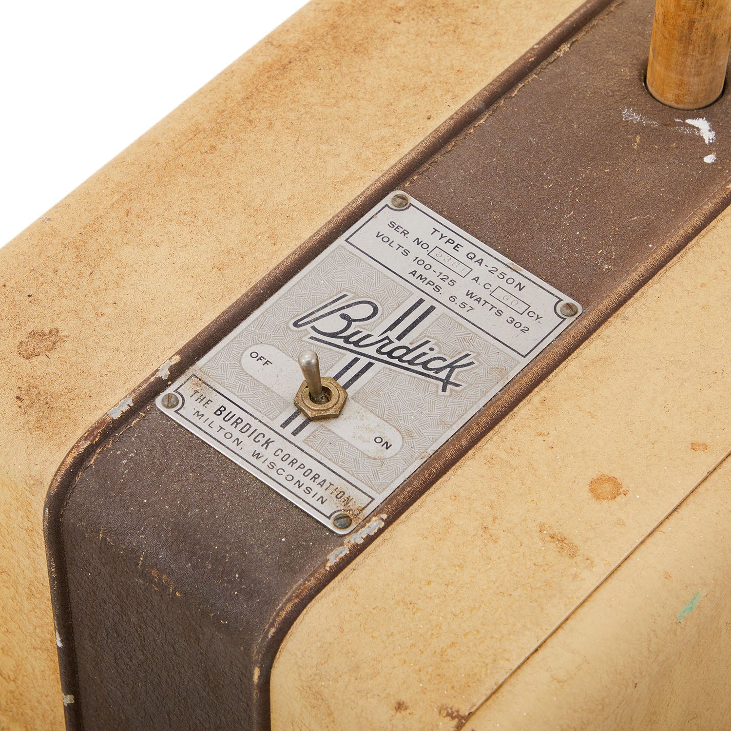 Details: Vintage Burdick medical lamp with wheeled metal base Dimensions: 60" H x 16" W x 17" D Quantity: 1