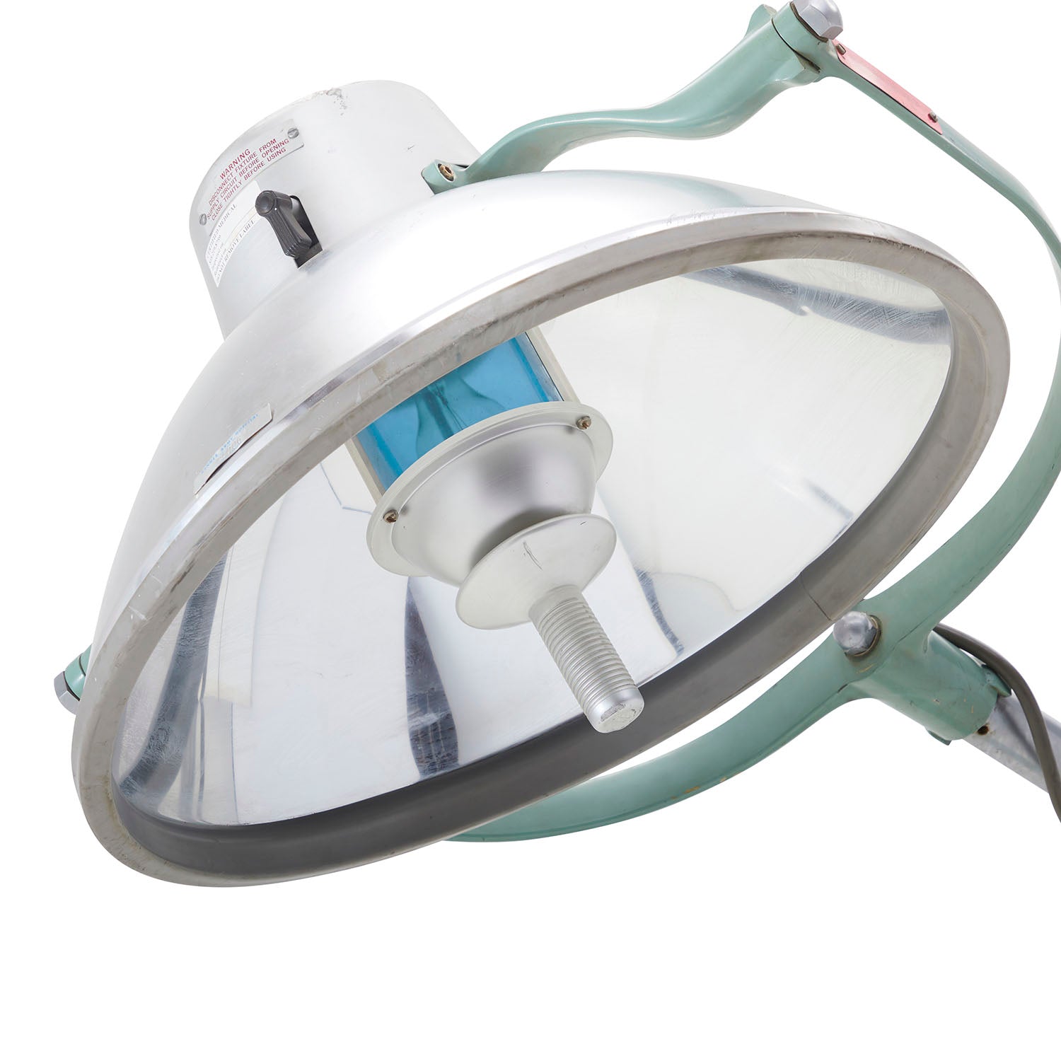 Details: Mint green vintage medical light fixture with adjustable head and mobile base Dimensions: 74" H x 26" W x 26" D Quantity: 1