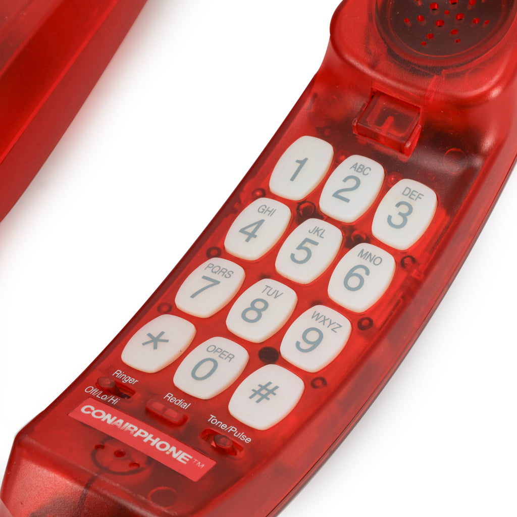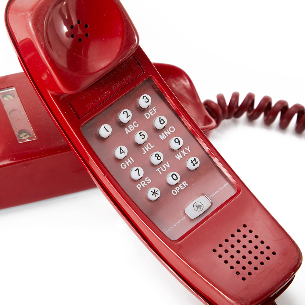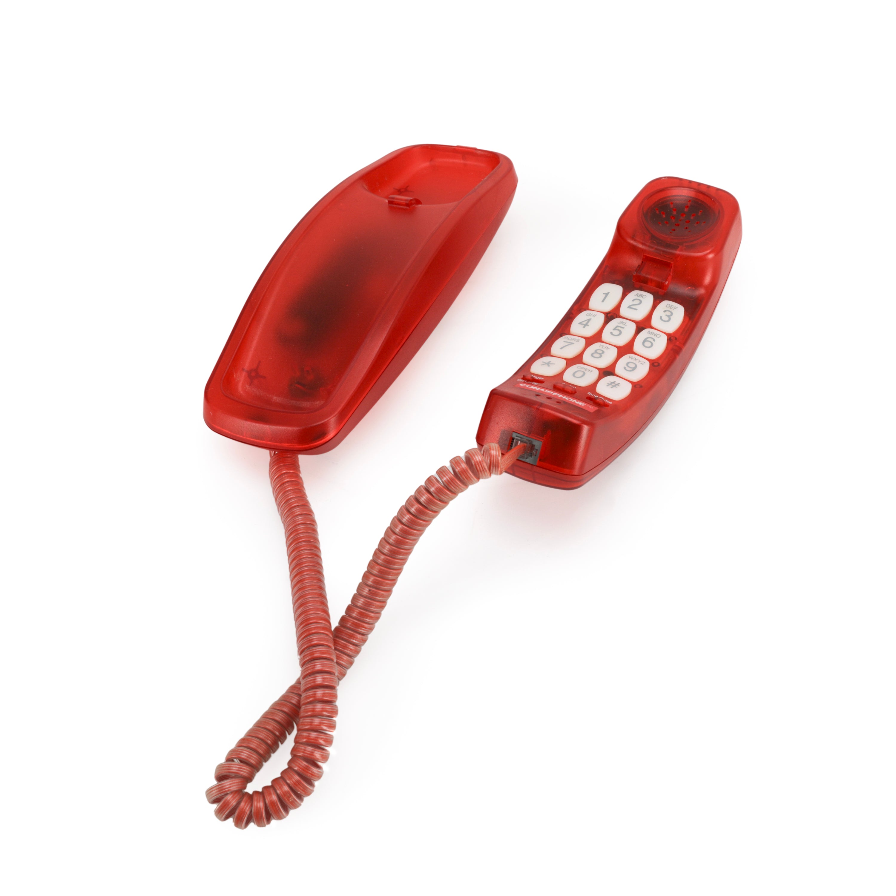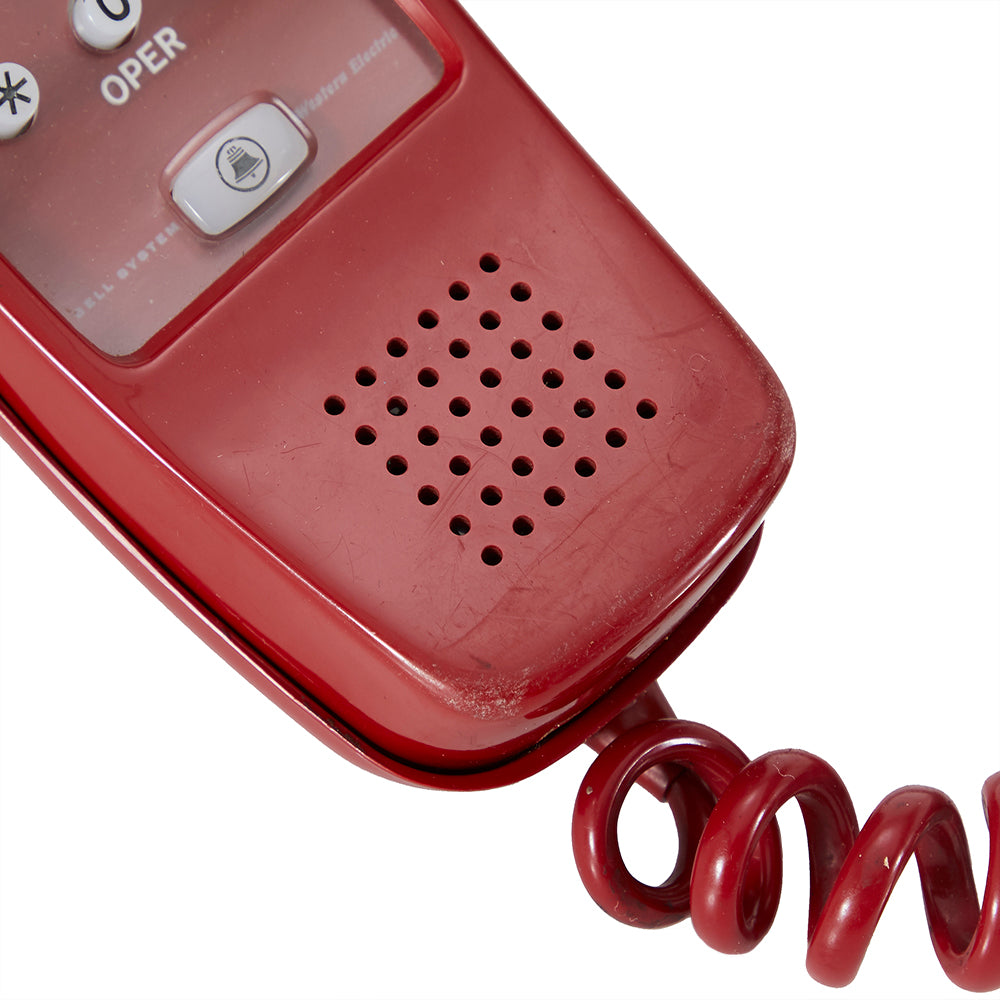 Details: Red push pad telephone with spiral cord Dimensions: 4" H x 9" W x 3" D Quantity: 1