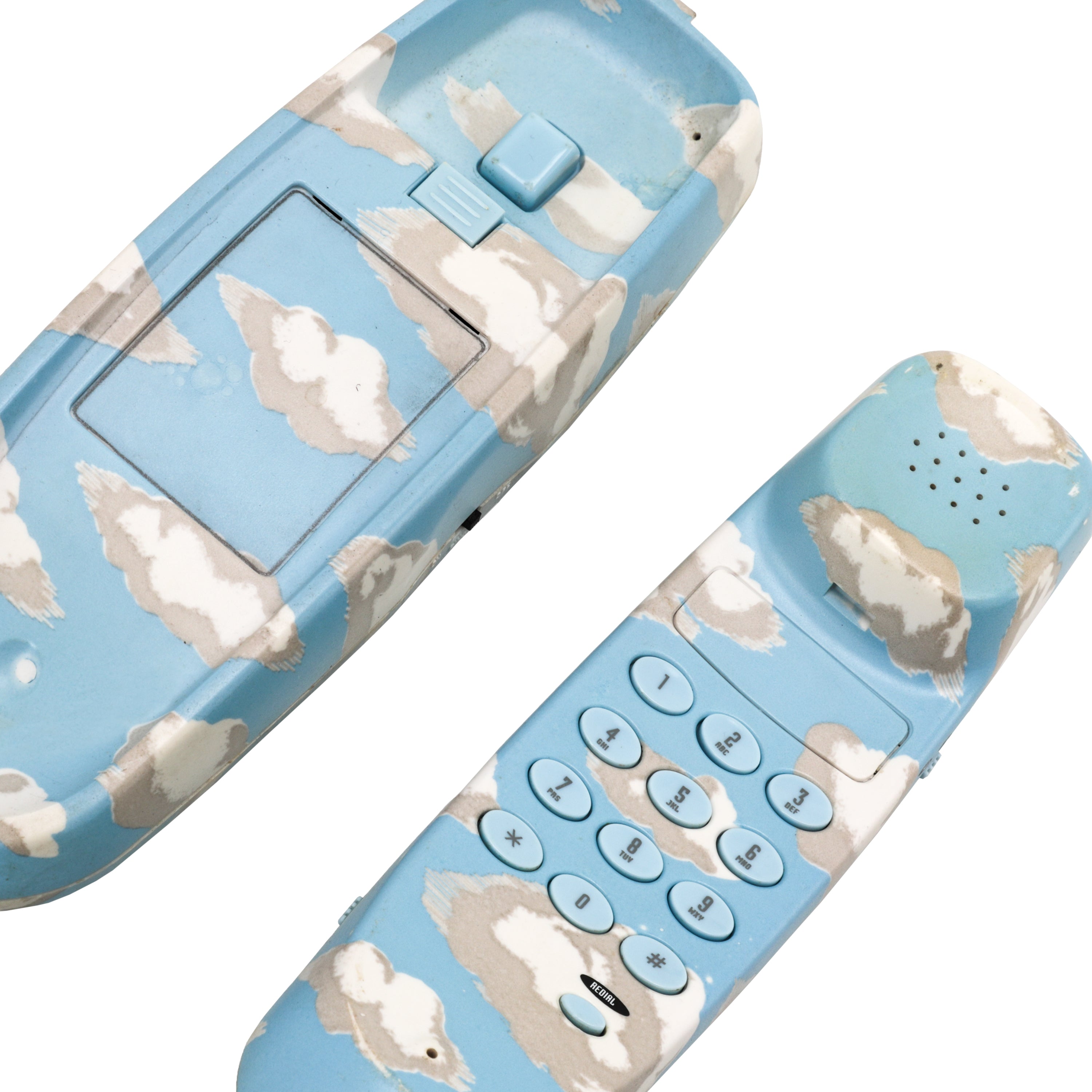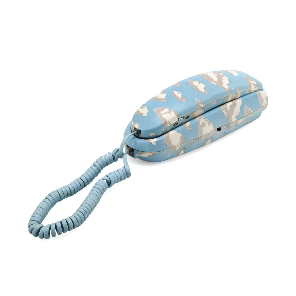 Details: Vintage telephone with cloud graphic pattern. Dimensions: 3" H x 9" L x 2.75" W