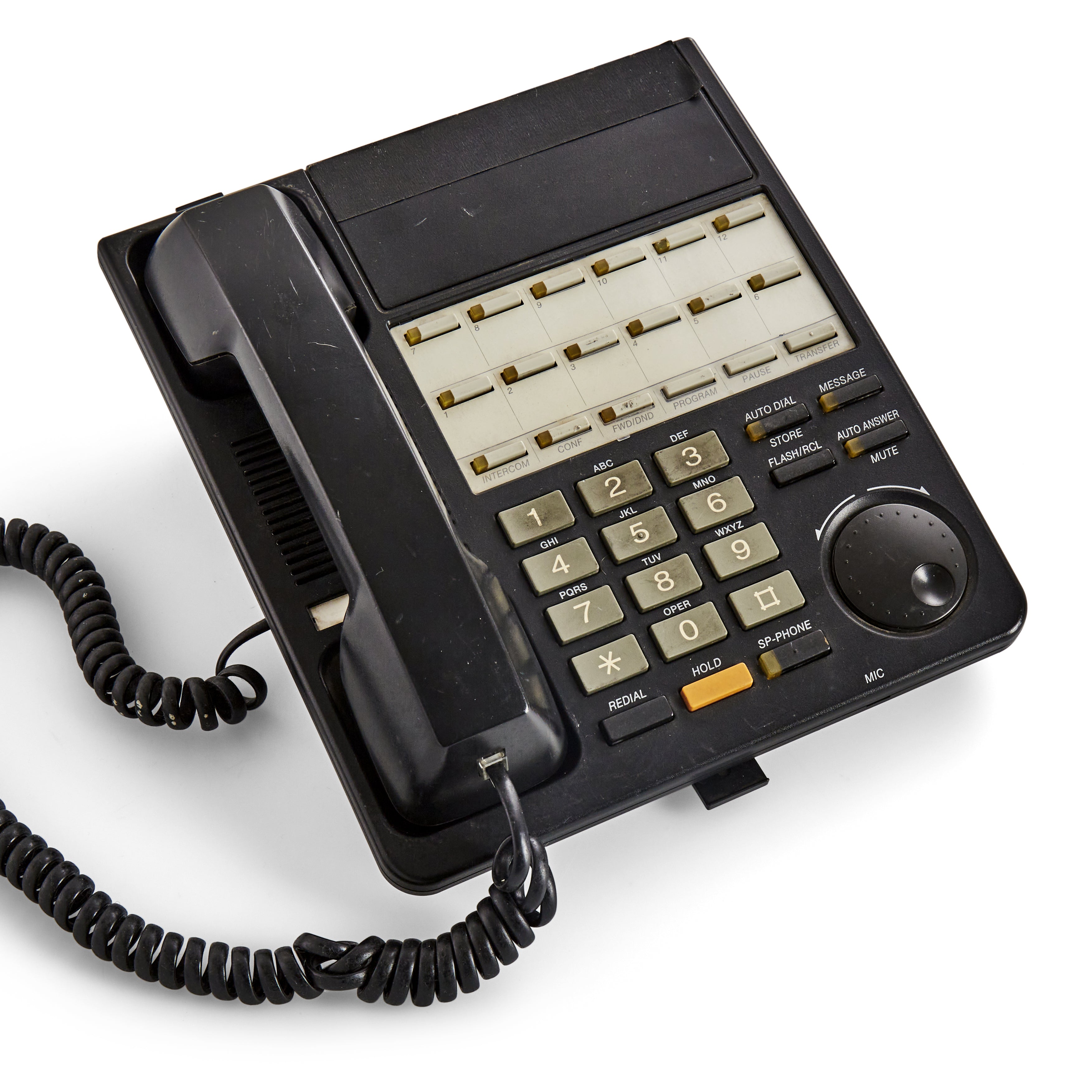 Details: Black phone with volume knob, multiple lines, and grey buttons Dimensions: 4.25" H x 8" W x 9" D Quantity: 4