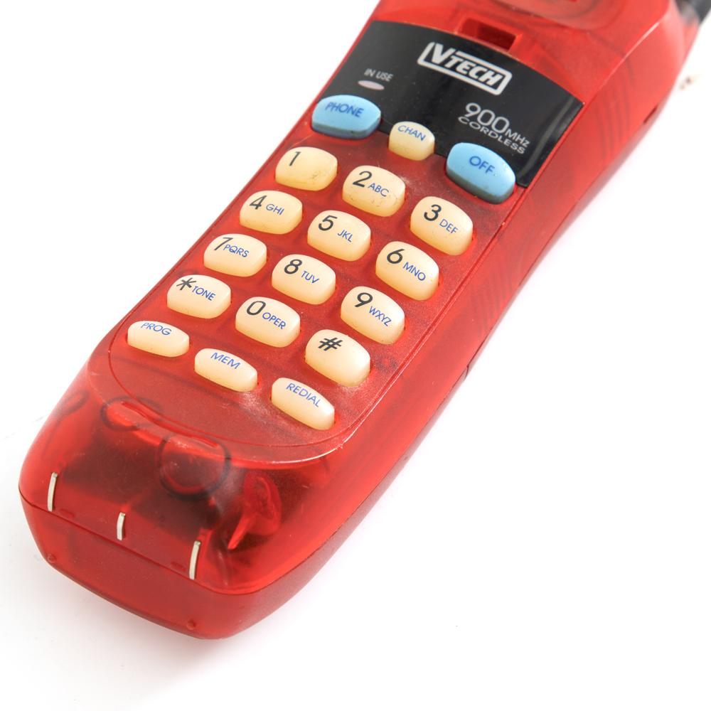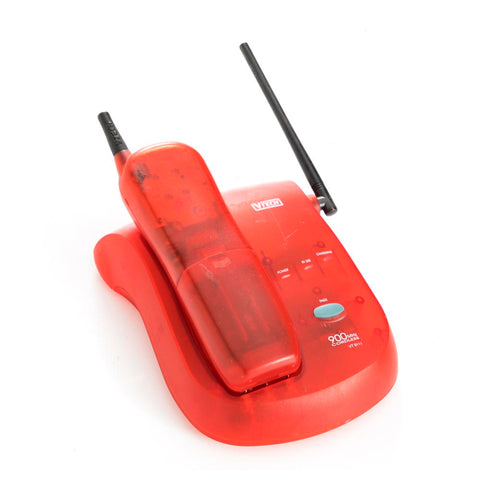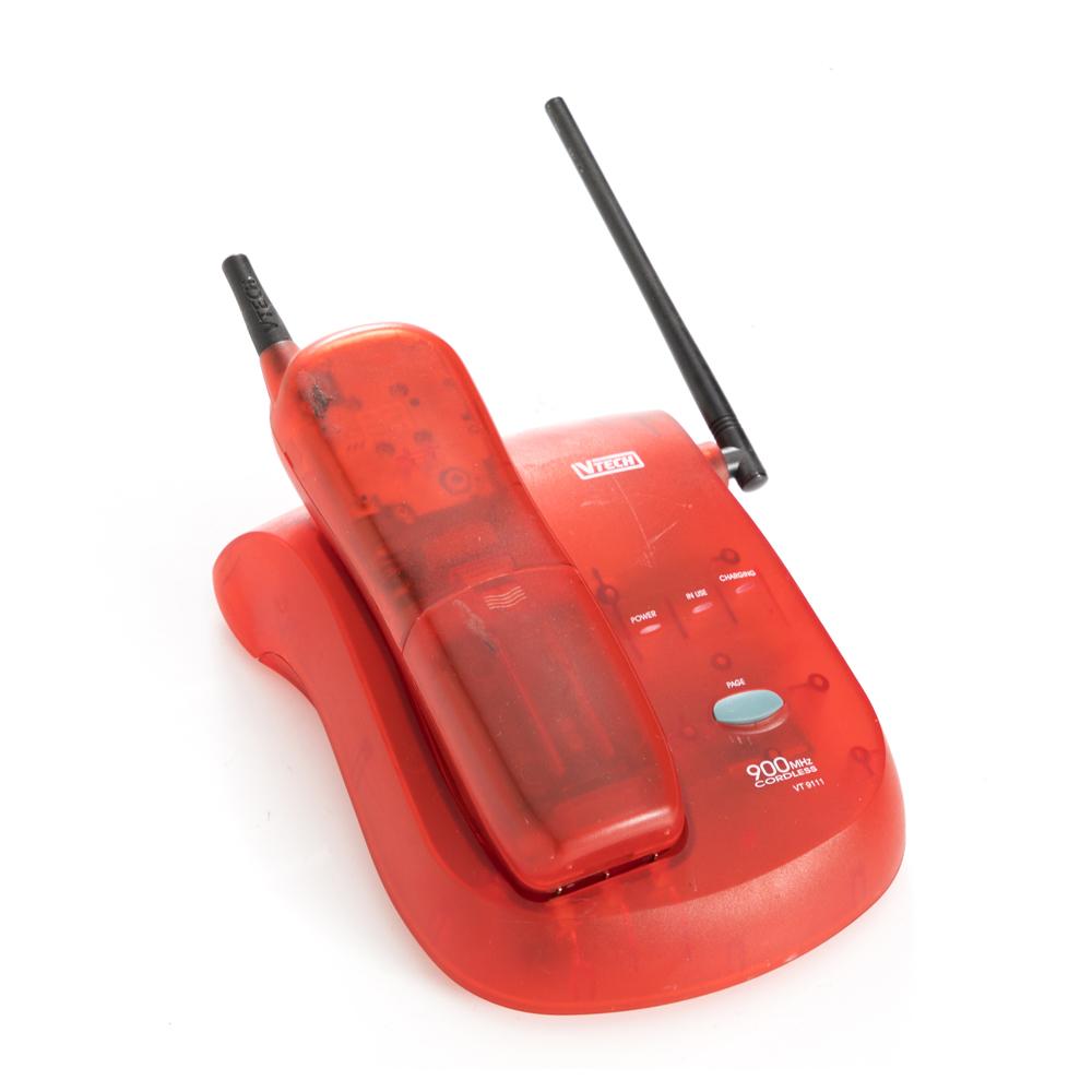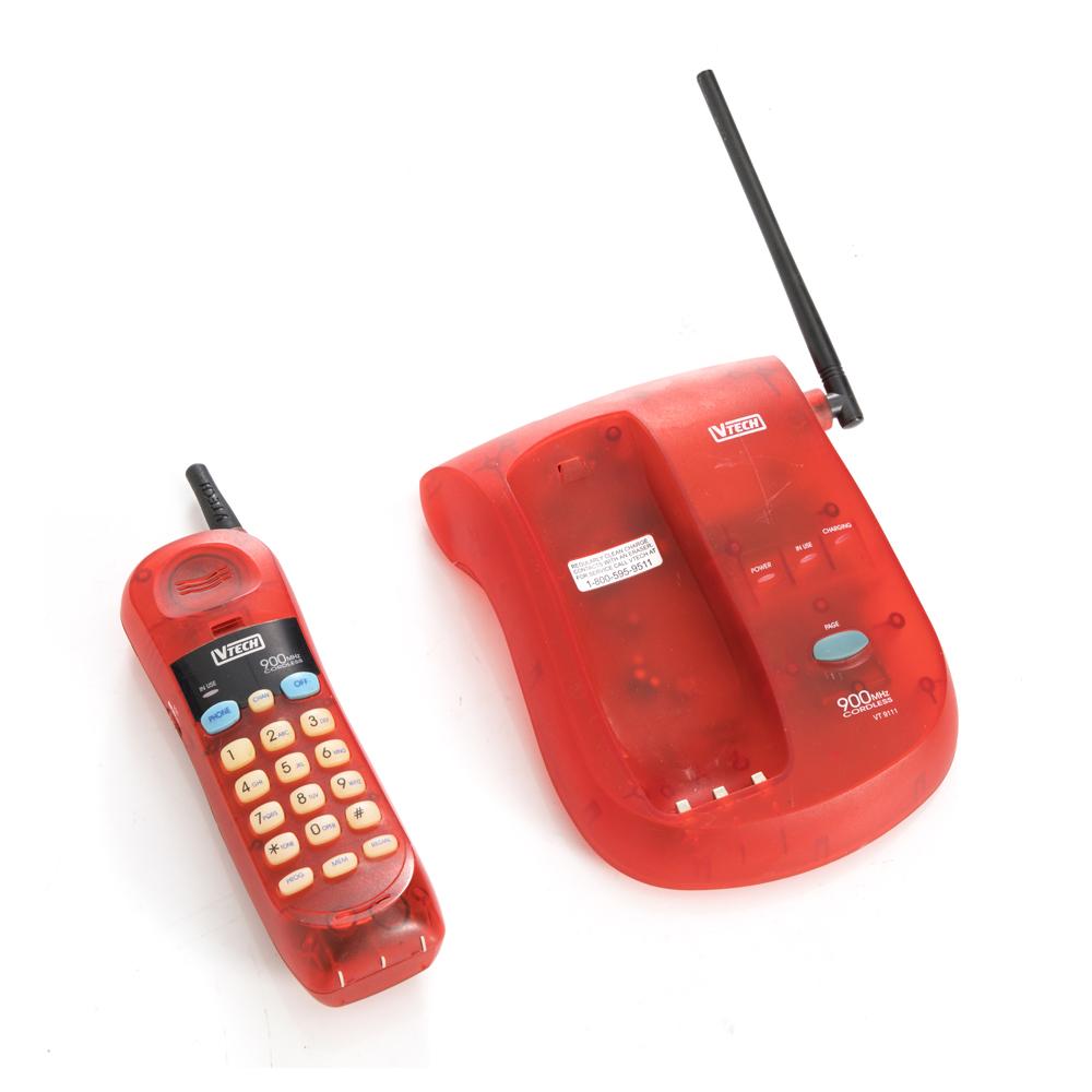 Details: Cordless VT-9111 phone and base, red translucent plastic shell Dimensions: 3.5" H x 5.75" W x 7.5" D Quantity: 1