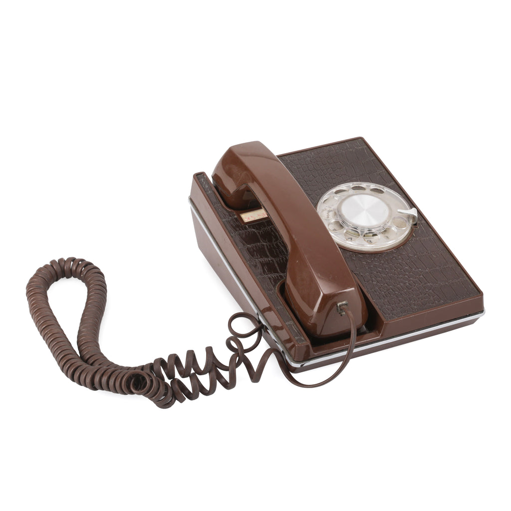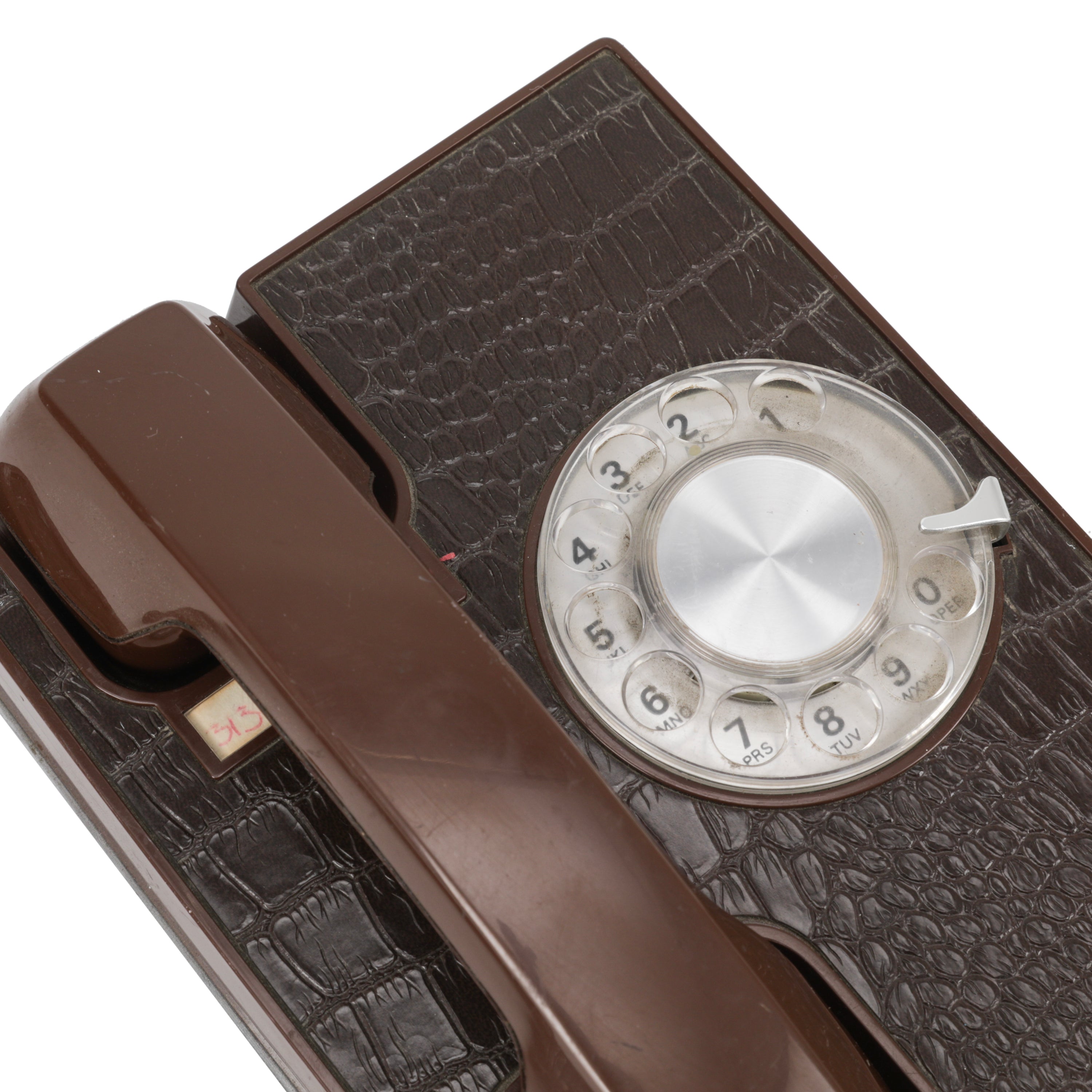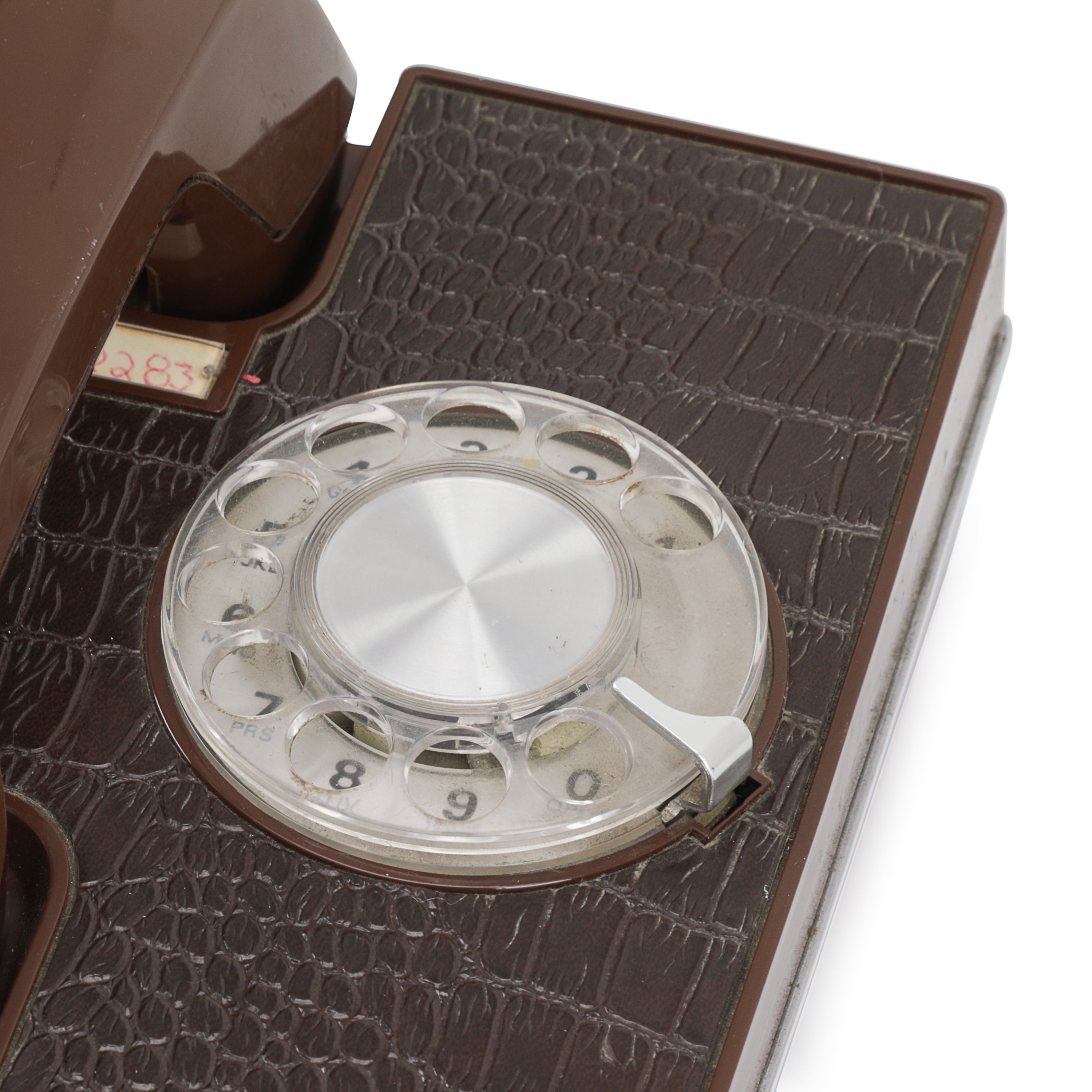 Details: Brown telephone with faux alligator skin and acrylic dial. Dimensions: 4" H x 6" W x 9" D Quantity: 2 (Each has slightly different...