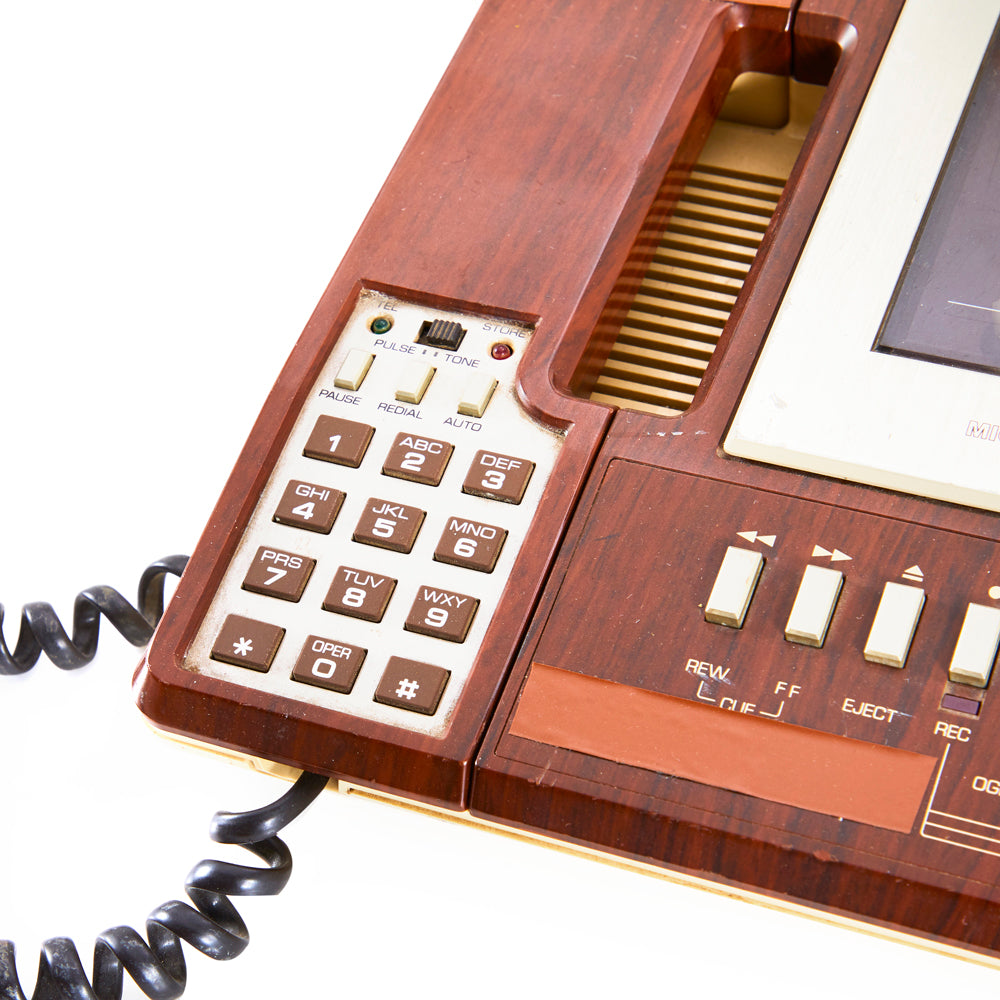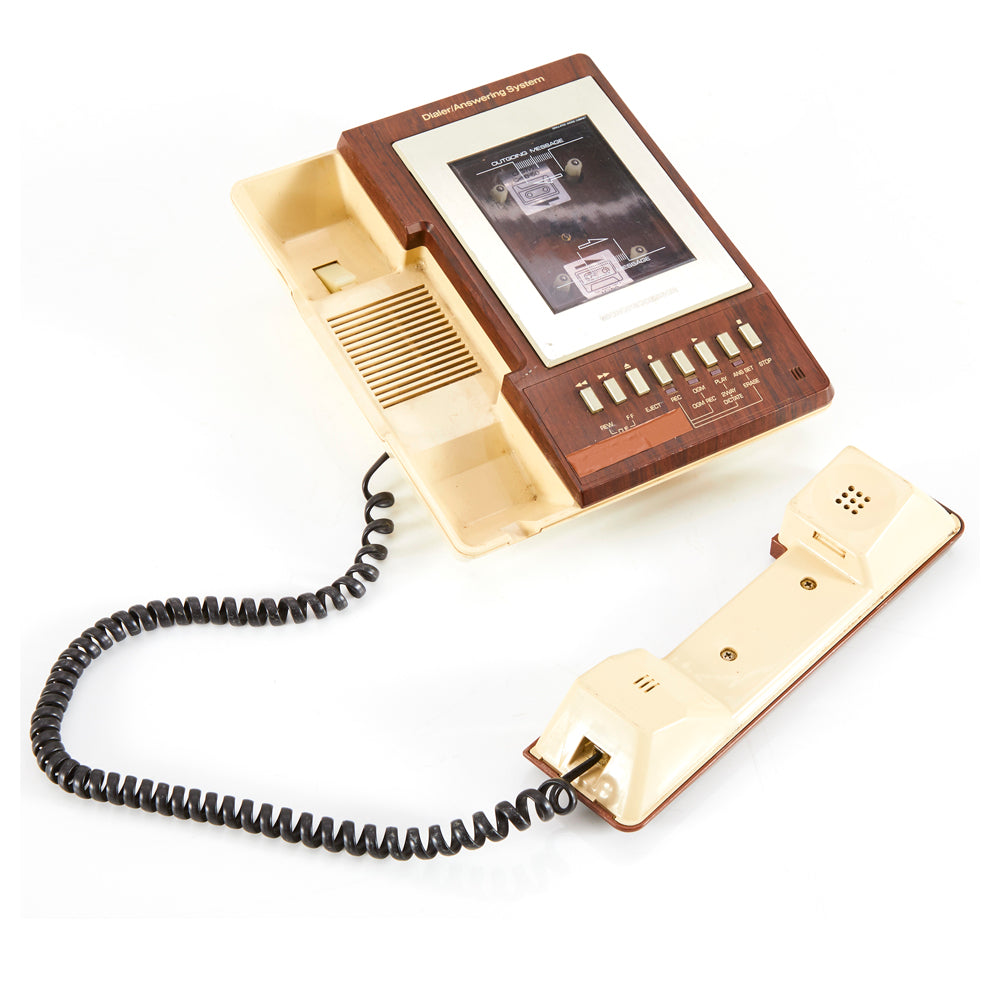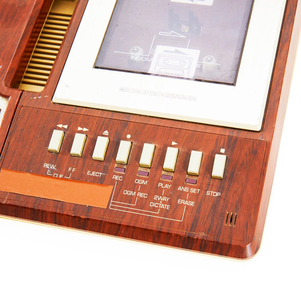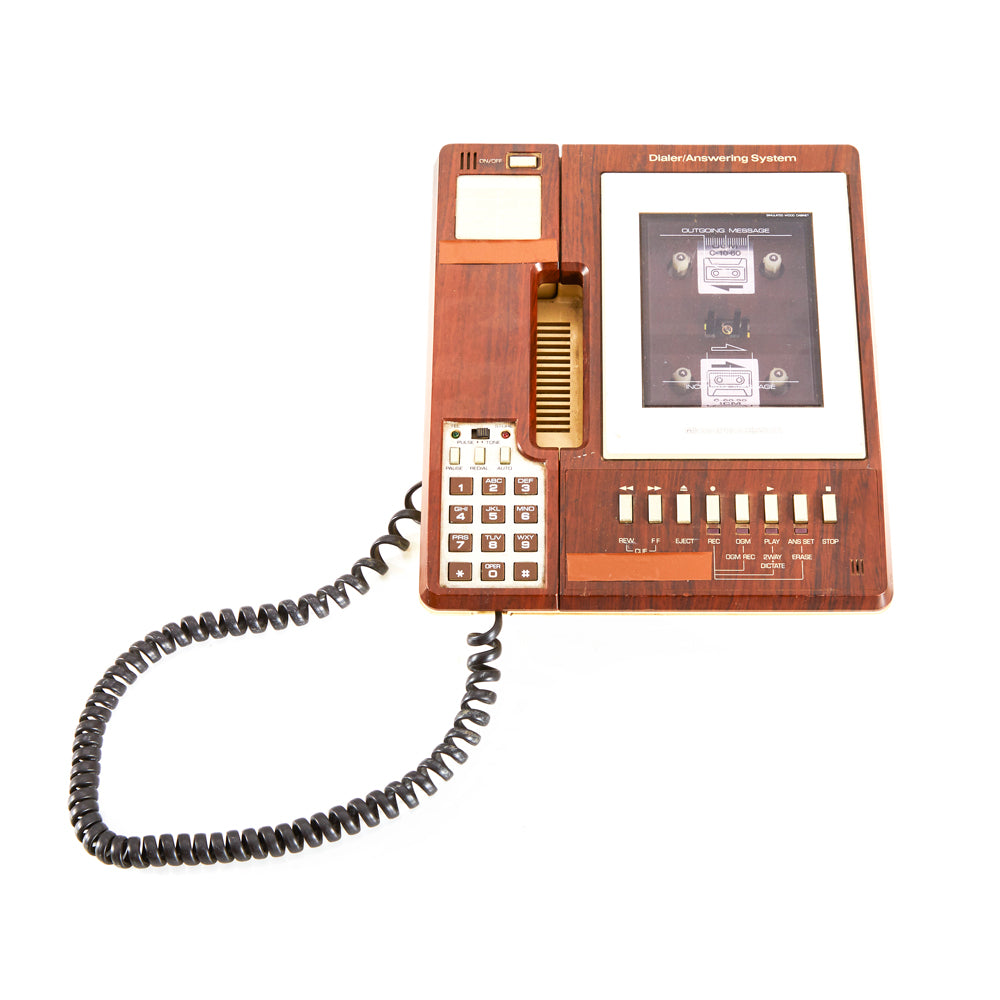 Details: Wood paneled Phone Mate answering machine with grey interface. Dimensions: 3" H x 9" W x 11" D Quantity: 1