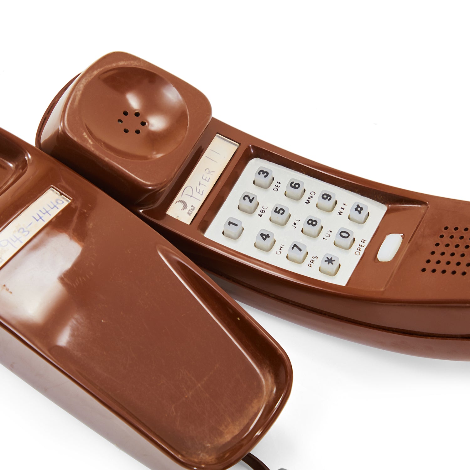 Details: Brown vintage AT&T home telephone with white buttons and handwritten telephone number note on the base Dimensions: 4" H x 3" W x 8.5" D ...