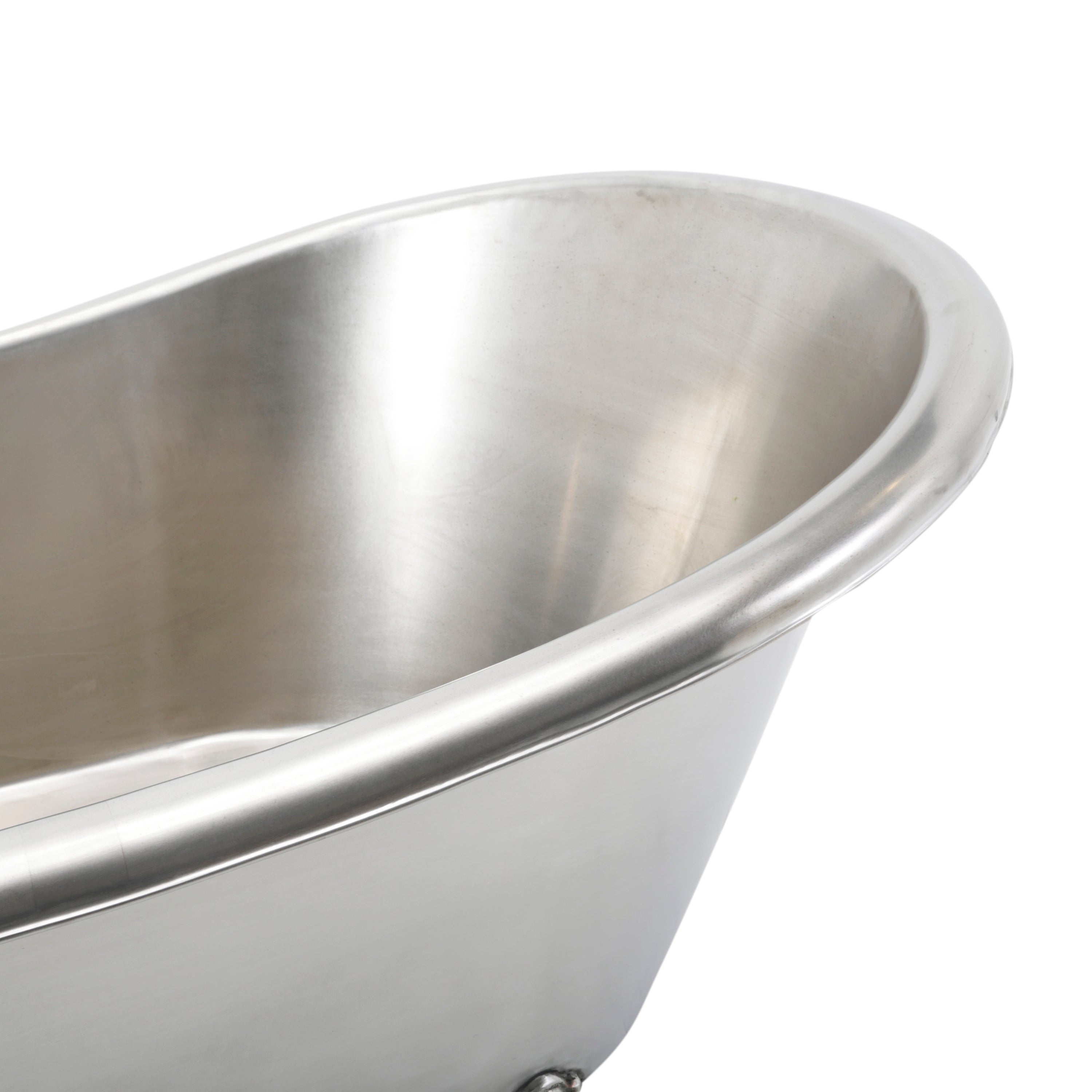Details: Metal tub with clawfoot legs. Dimensions: 30" H x 57" W x 36" D