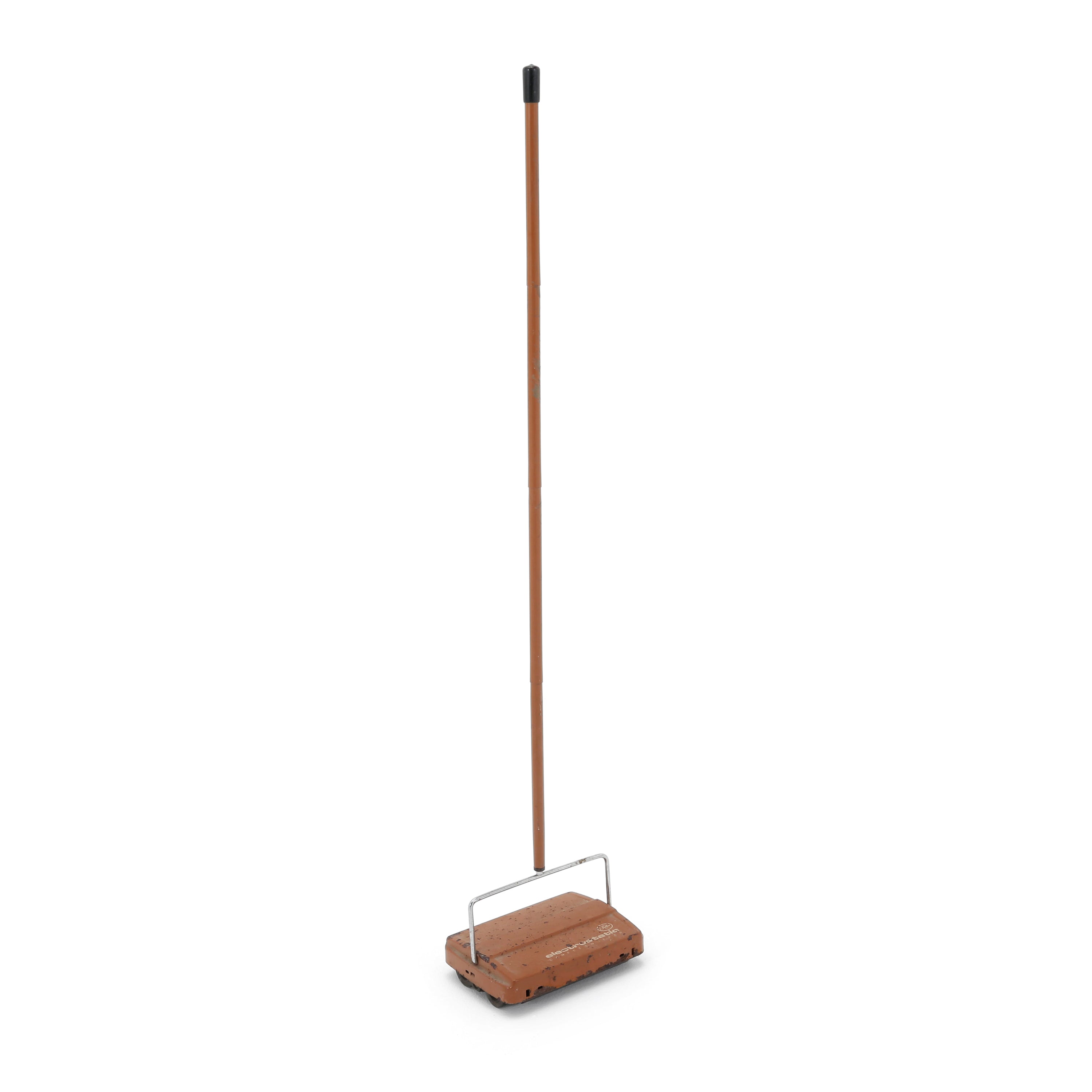 Details: Vintage two speed General Electric box fan with with white blades and grill and brown metal frame (Vintage electronic prop with old motor &...