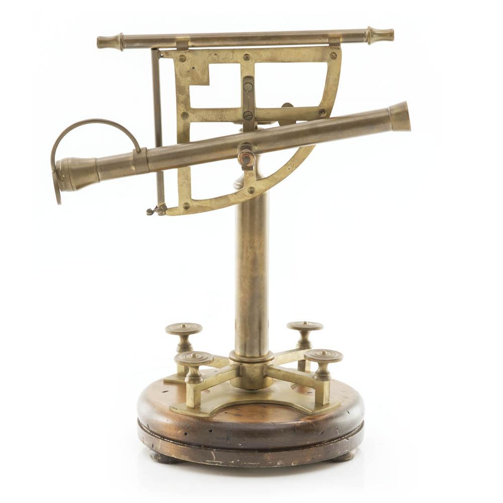 Details: Ornate brass and wood sextant / telescope.