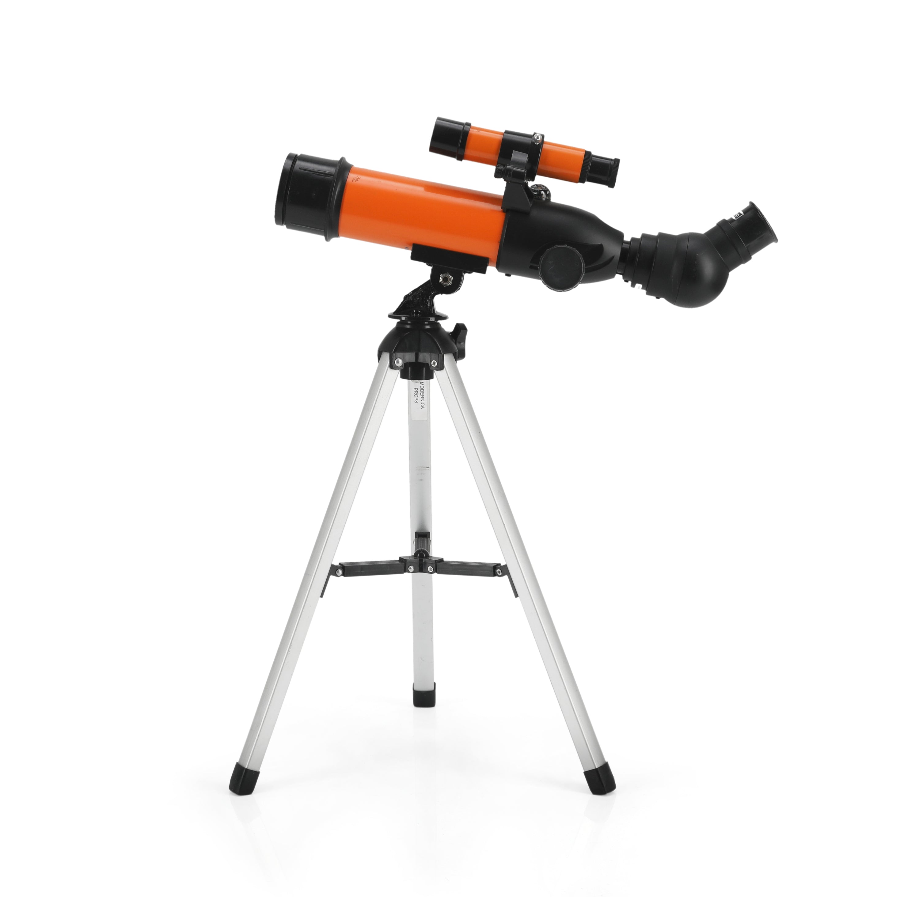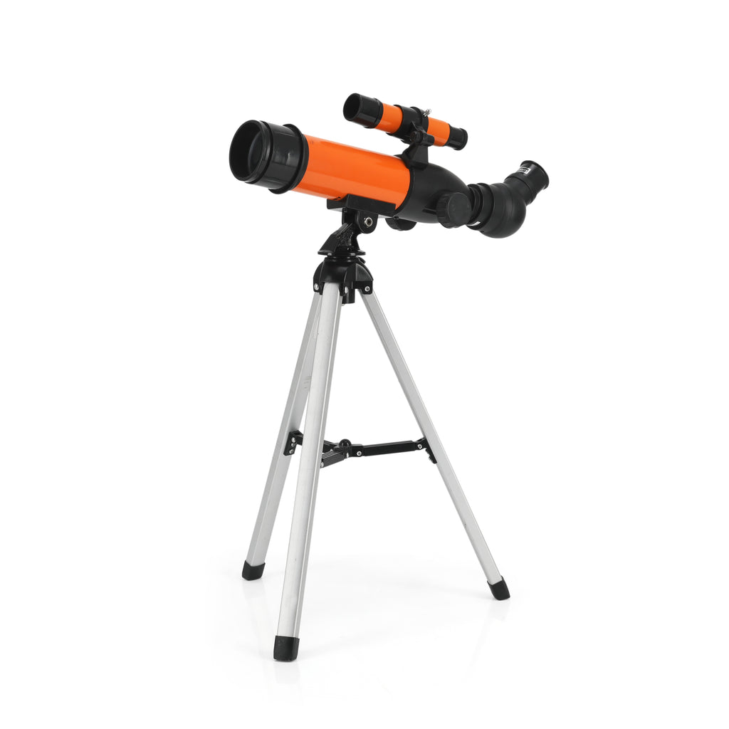 Details : Silver telescope on tripod legs. Dimensions: 20" H x 12" W x 15" D
