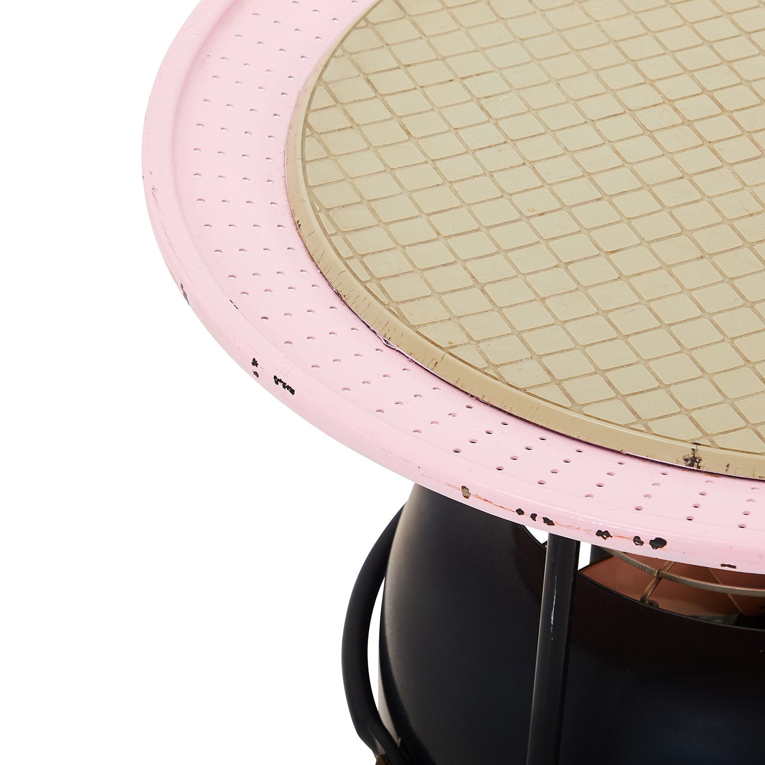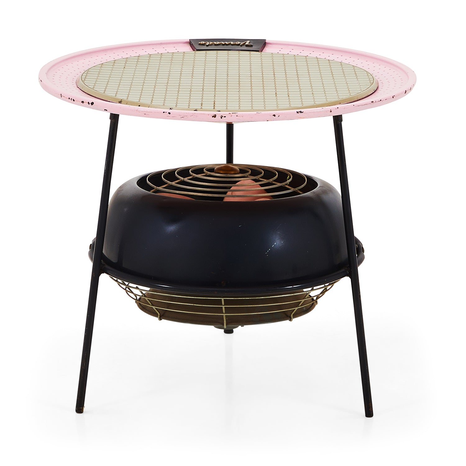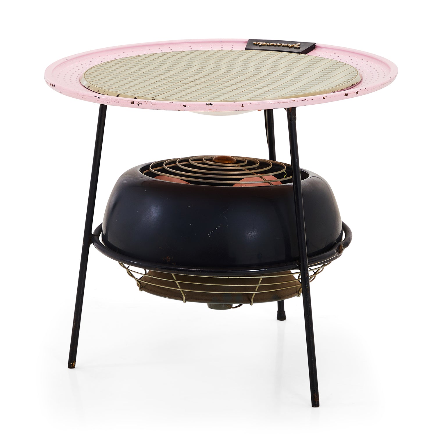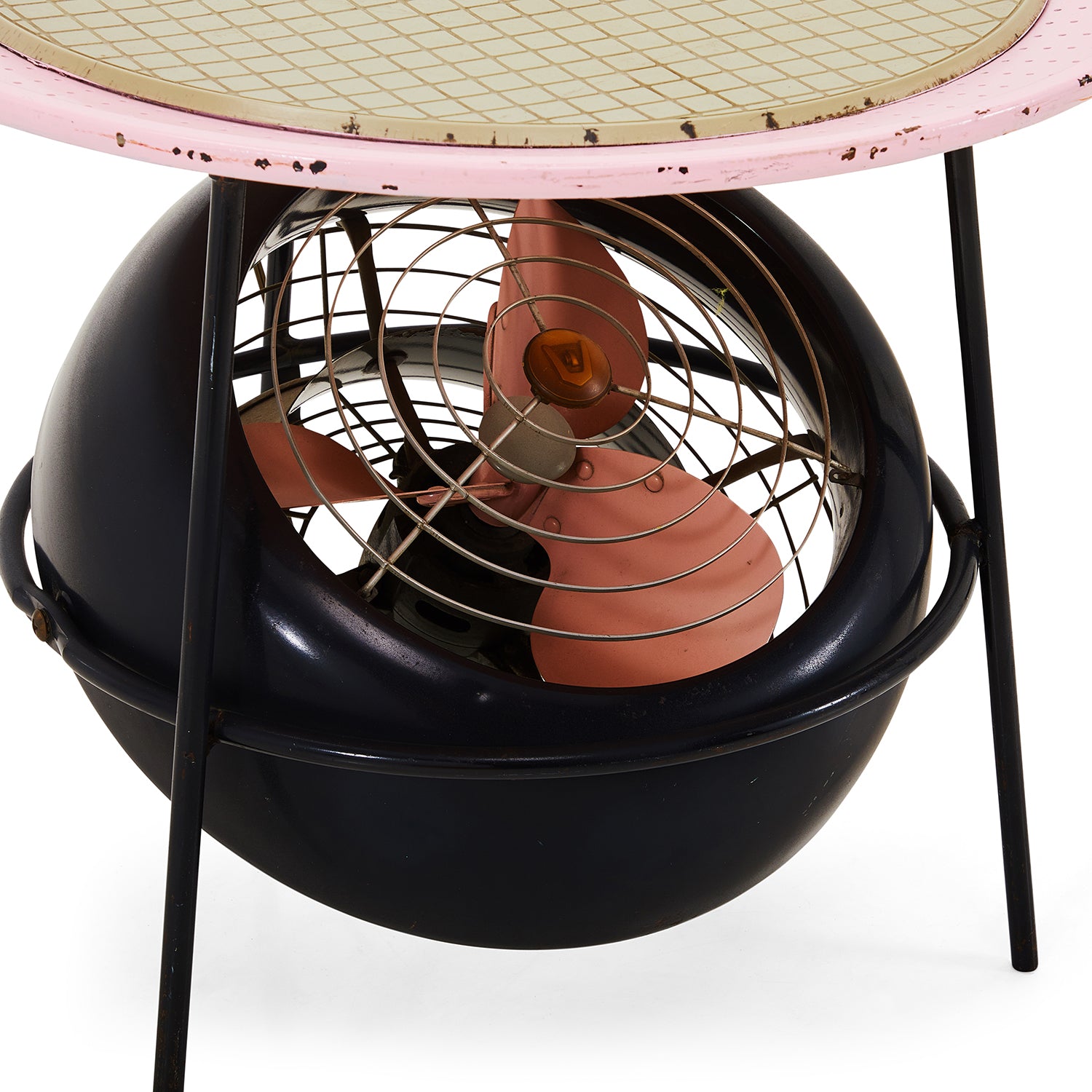 Details: Antique Roto-Beam brand table fan with black base and fan blades and a stout, globe-like shape (Vintage electronic prop with old motor & parts -...