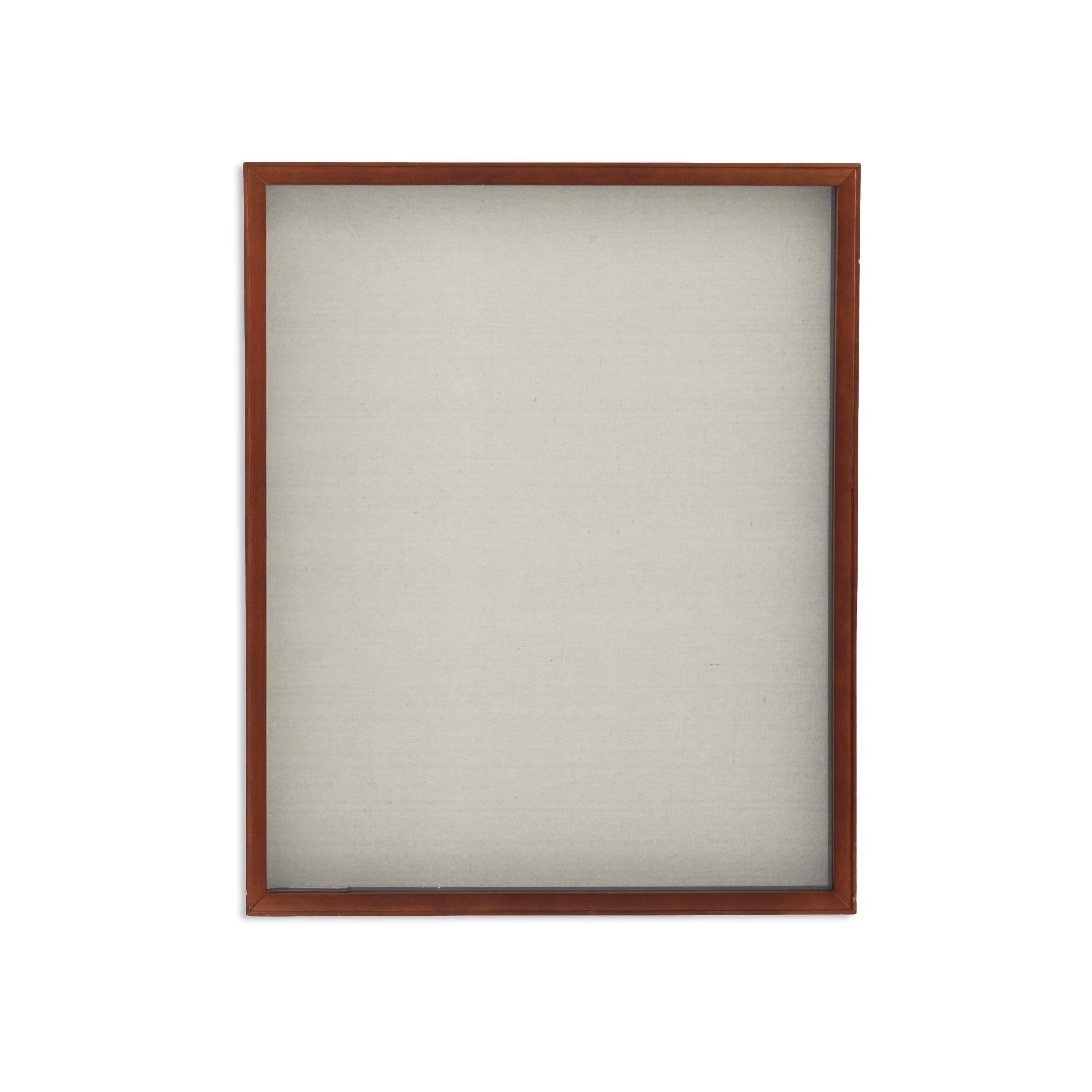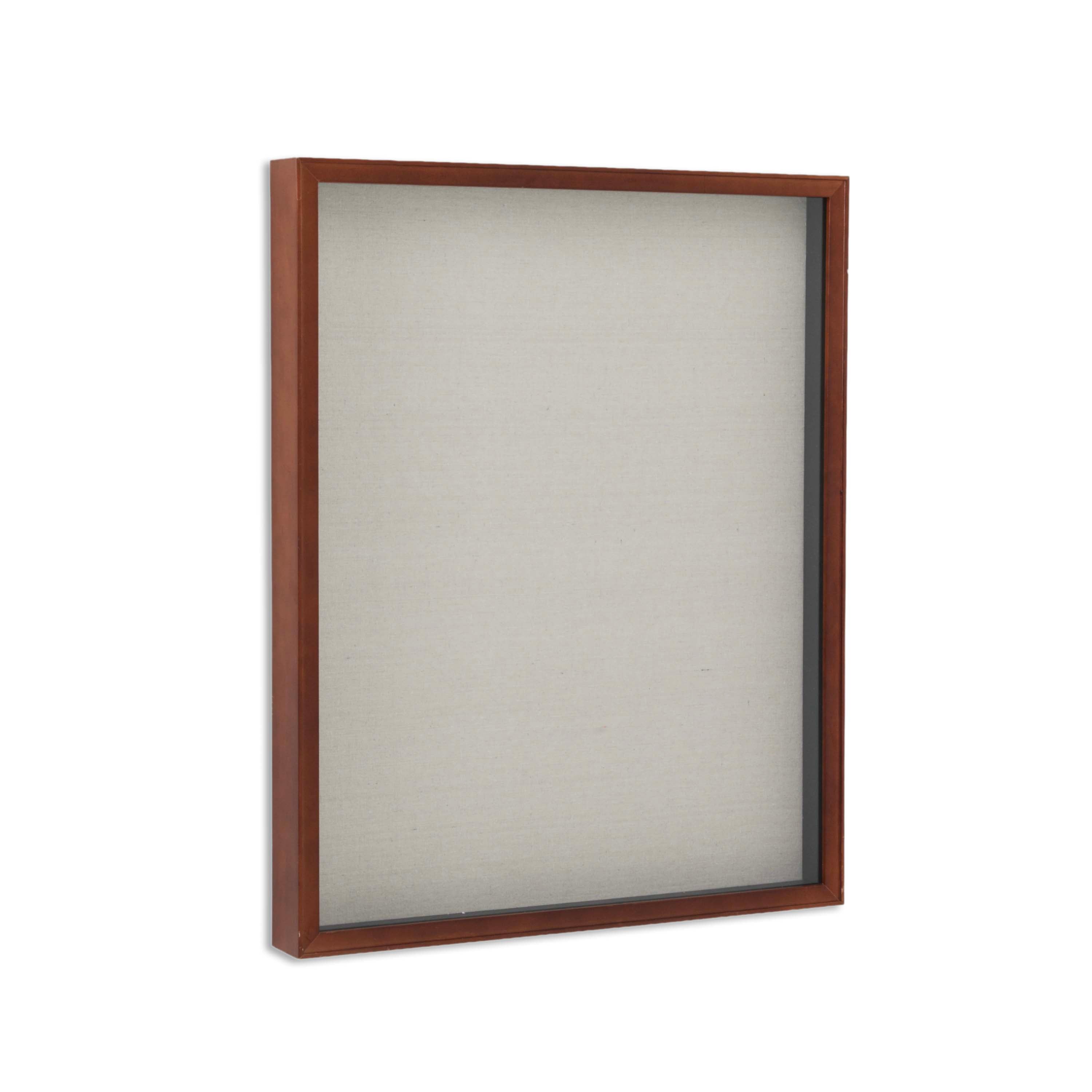Details: Grey fabric display board in a deep wood frame. Dimensions: 31" H x 25" W x 3" D