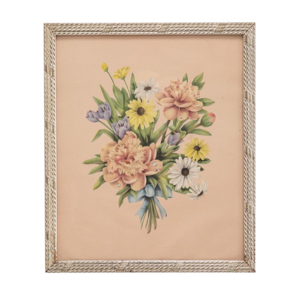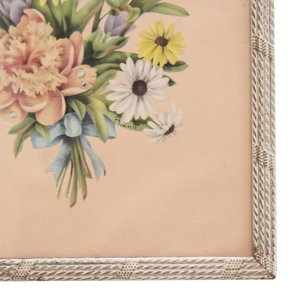 Details: Antique picture of pink floral bouquet.
