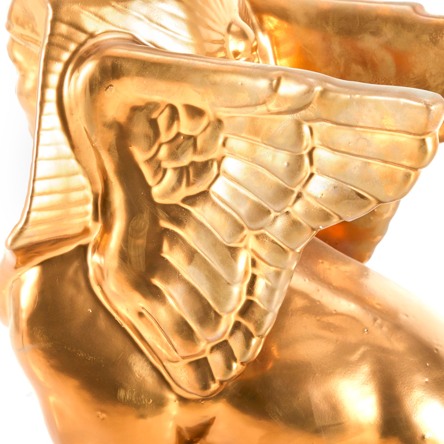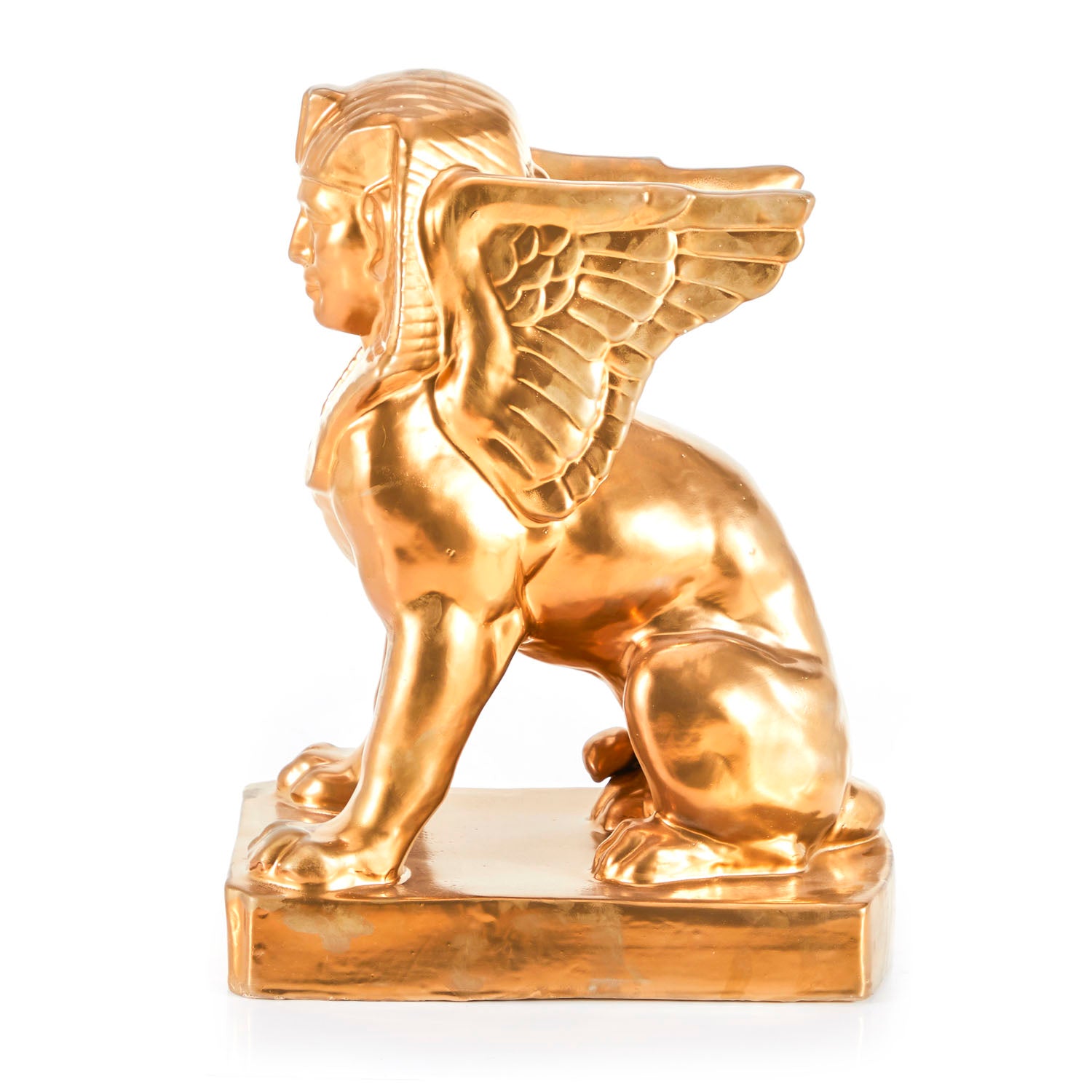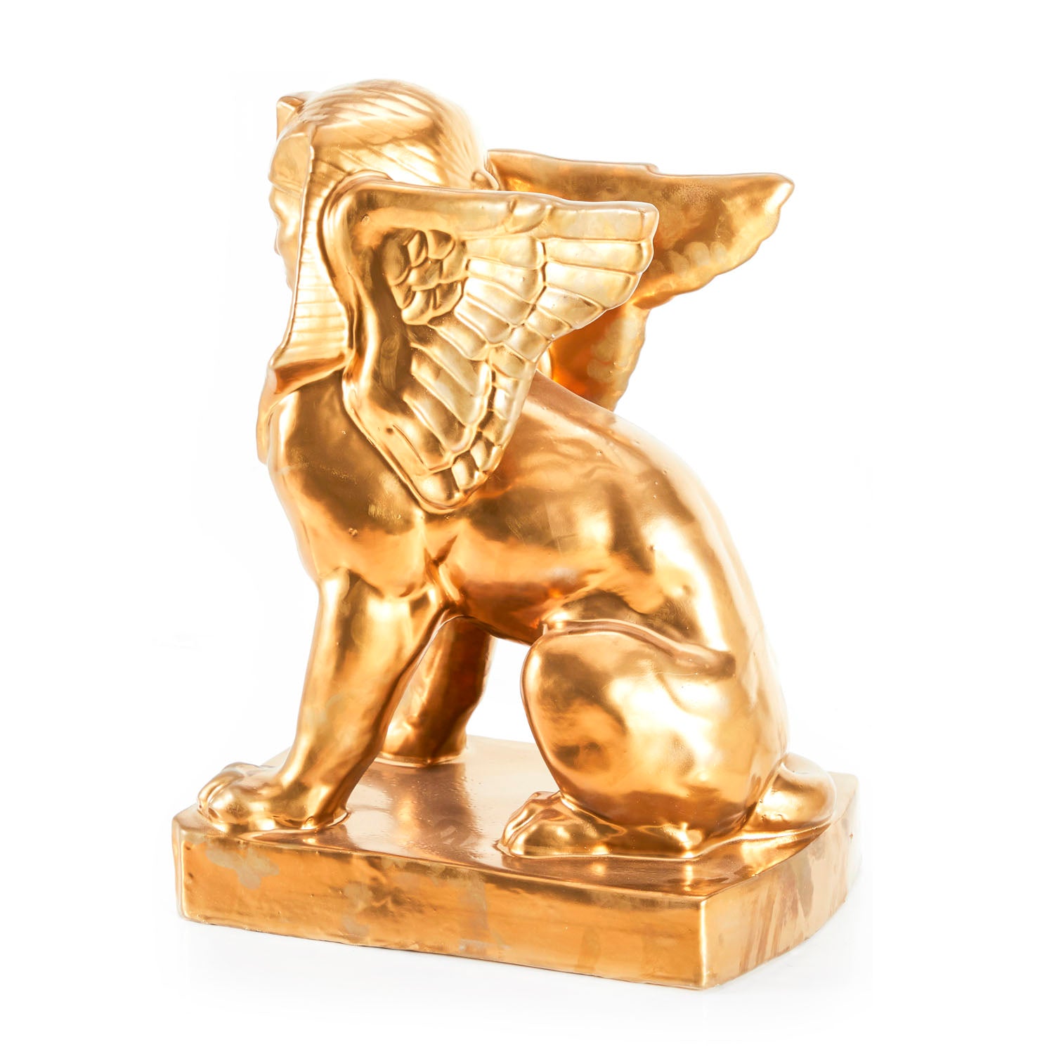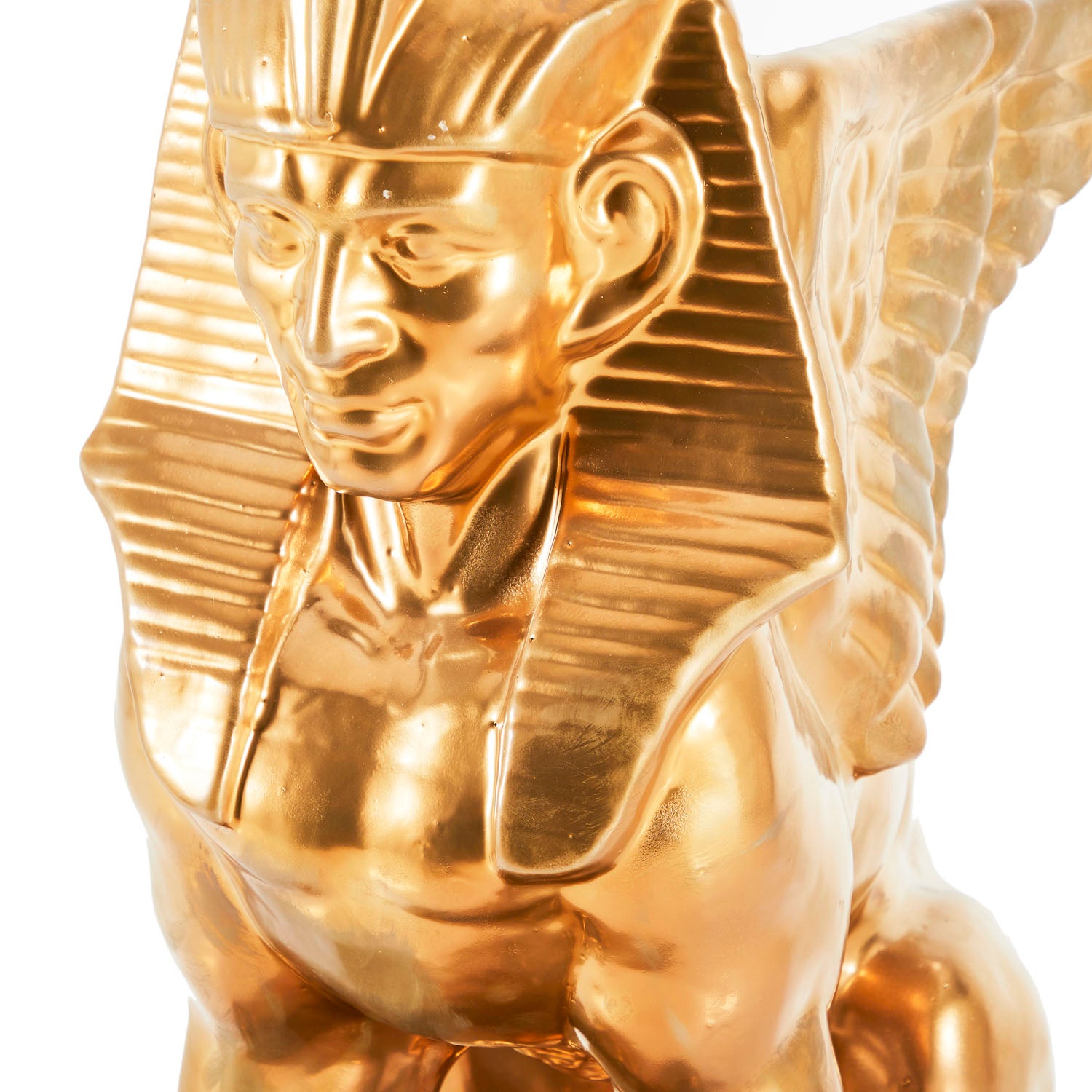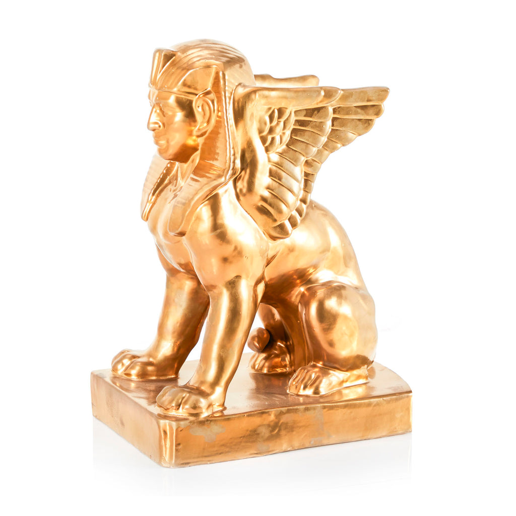 Details: Gold winged male sphinx floor statue Dimensions: 28" H x 13.5" W x 20" D Quantity: 2