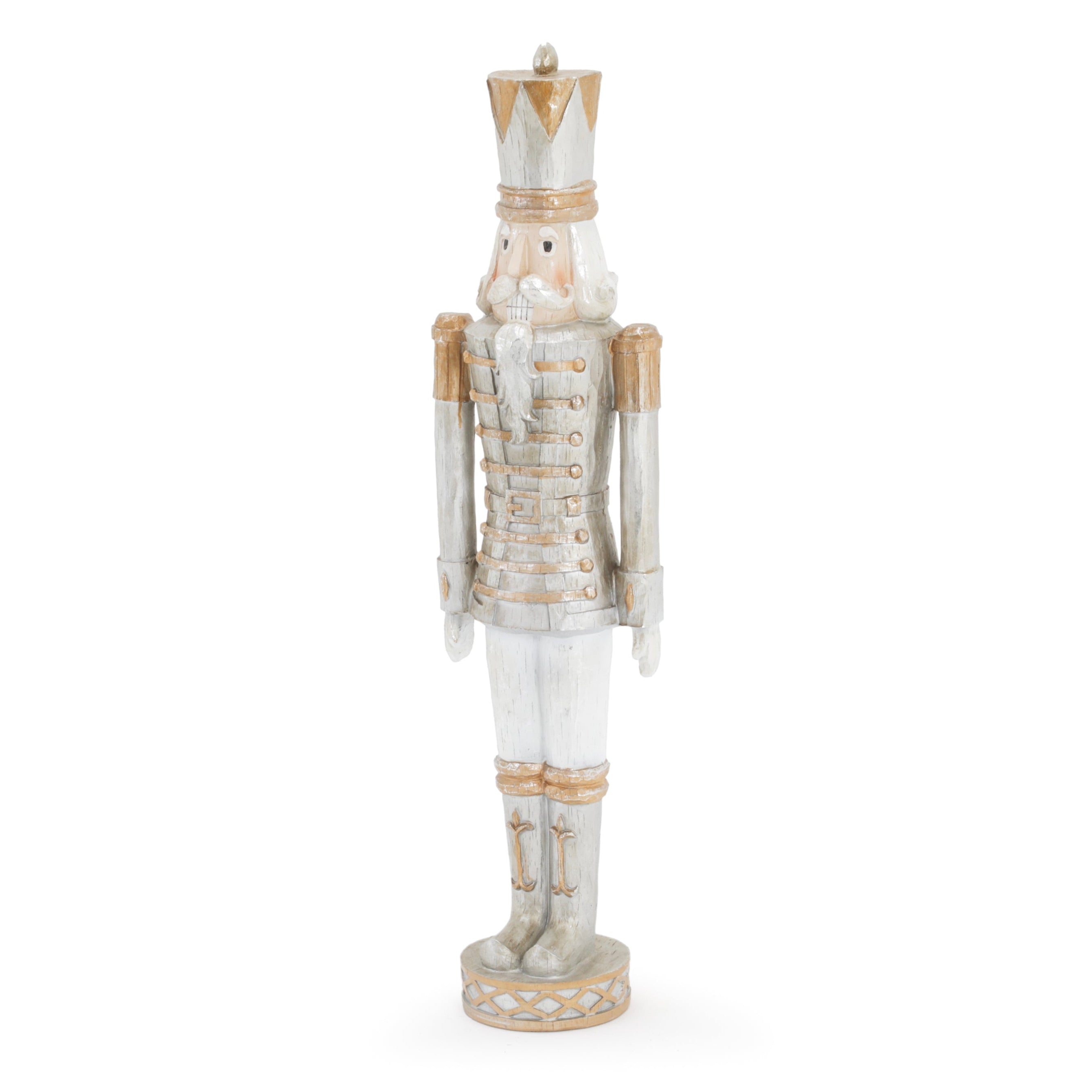 Details: Vintage nutcracker with painted features. Dimensions: 47" H x 12" W x 9" D