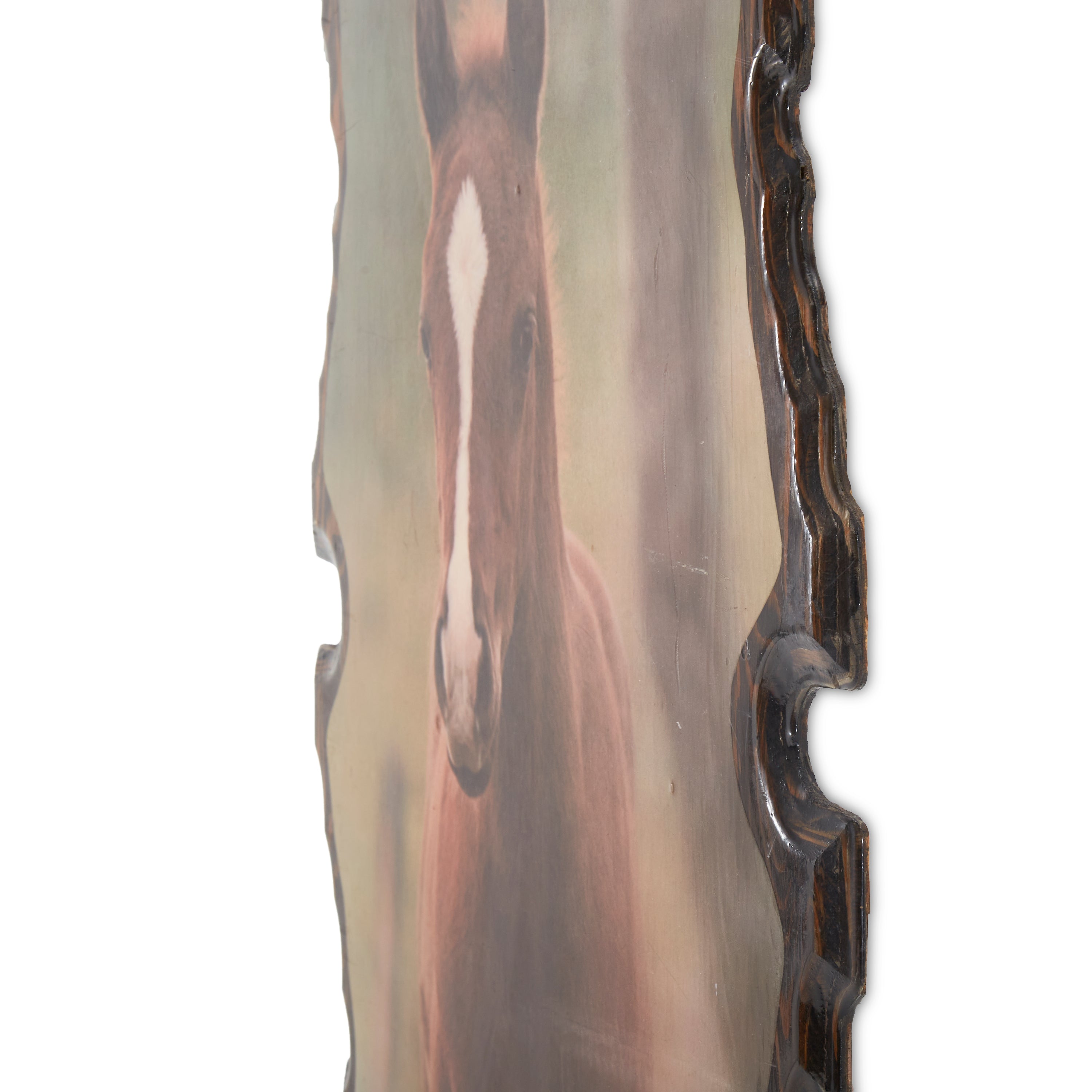 Details: Copper horse bust wall sculpture with wood frame Dimensions: 16" H x 15" W x 2"D Quantity: 1