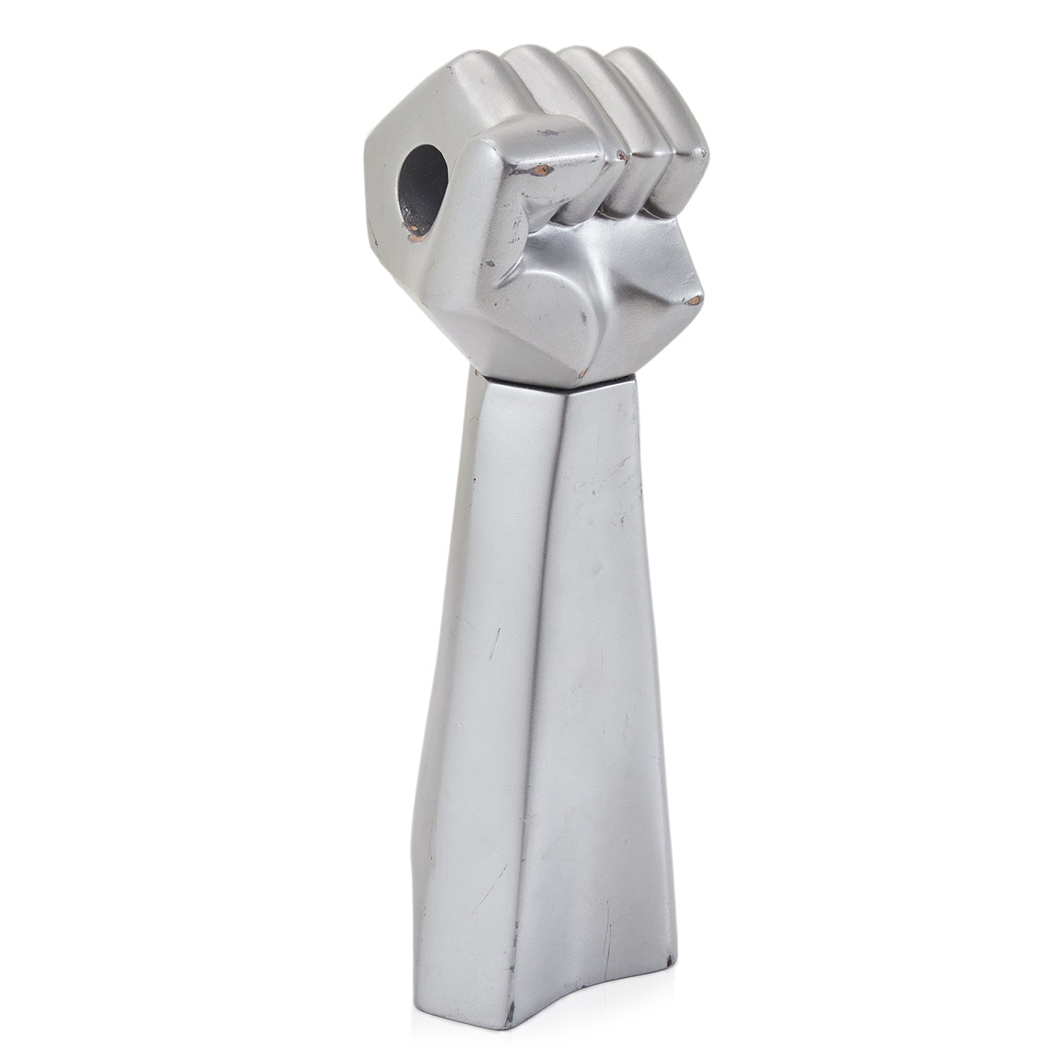 Details: Geometric acrylic sculpture resembling a liquor bottle with a yellow pentagonal body and a black inverse trapezoid top Dimensions: 10" H x 4" W...