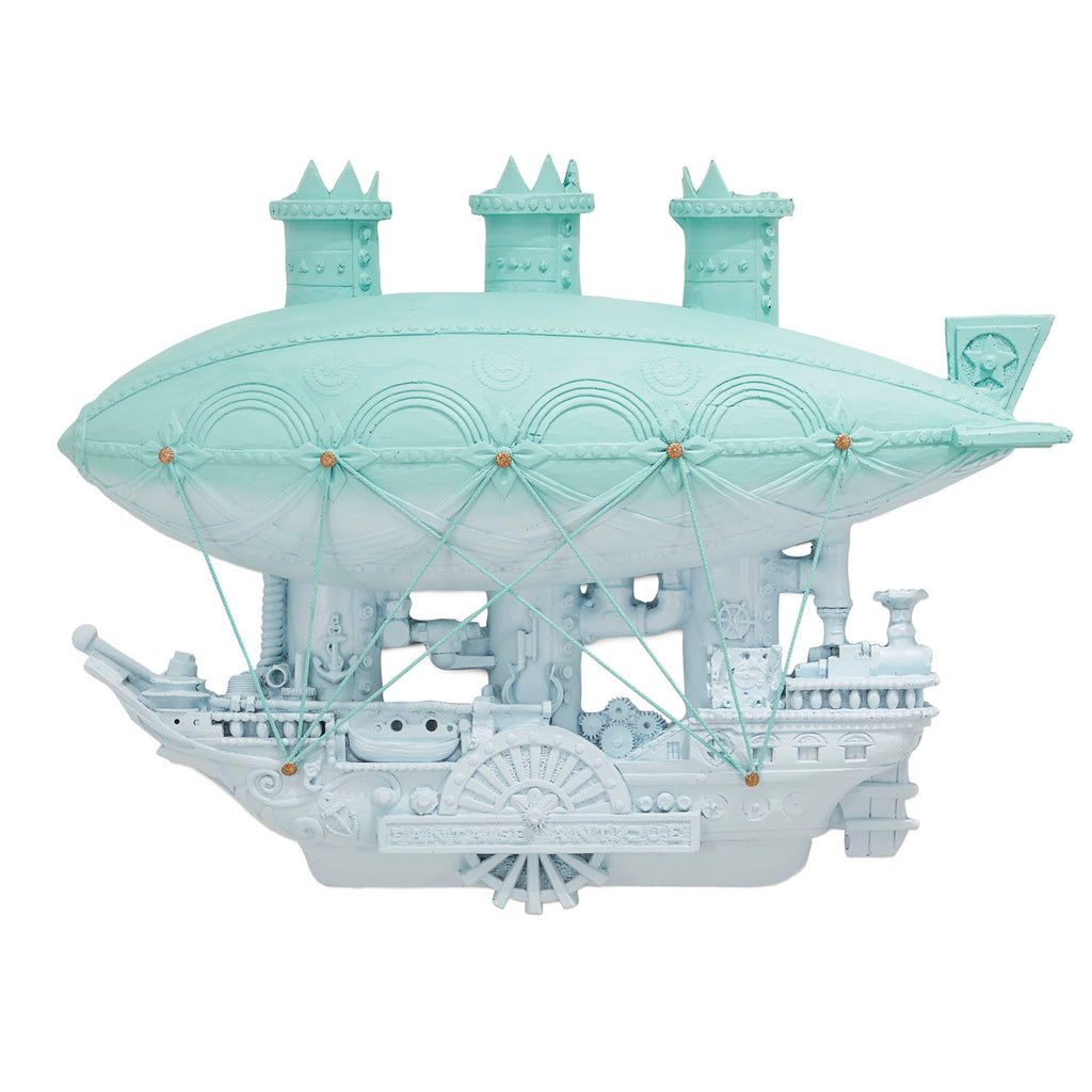 Details: Abstract wall sculpture of a wooden guitar with white and yellow checkered background, three spheres, and white and blue circular ornamentation Dimensions: 48" H x 12"...