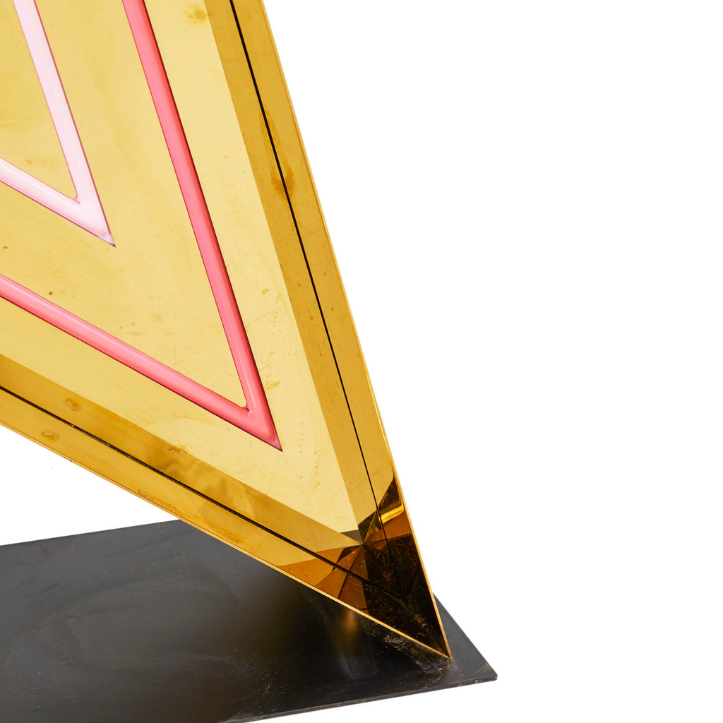 Details: Futuristic deco lamp with a central machined pedestal