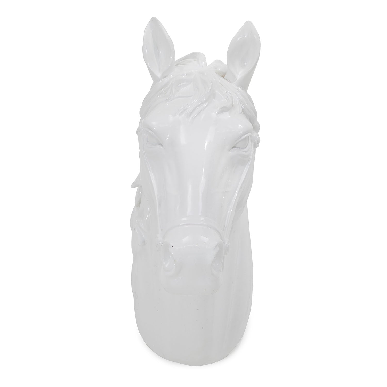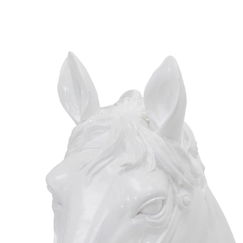 Details: Abstract white sculpture vaguely depicting a figure with its chin resting on its hand in thought, with a cracked ceramic pattern and a black base...