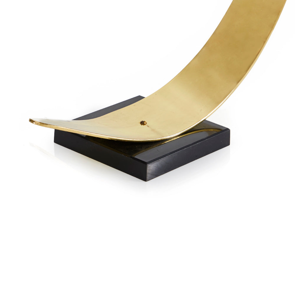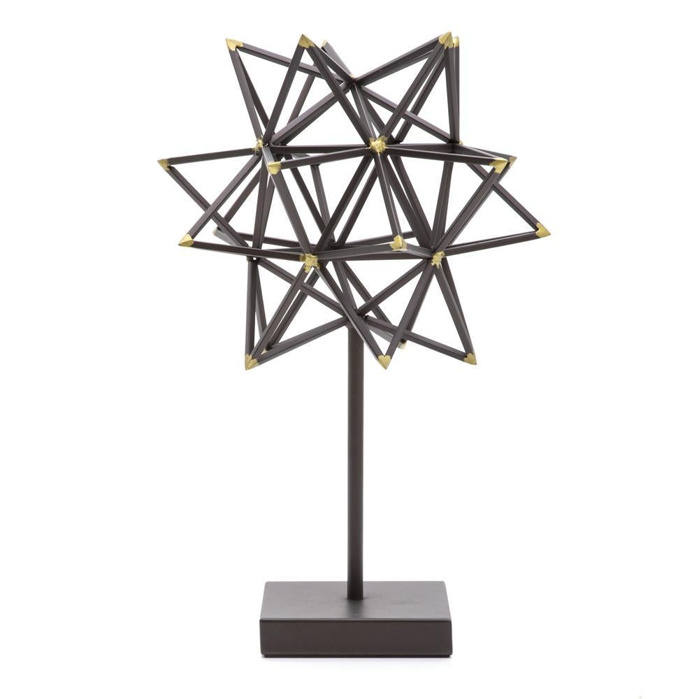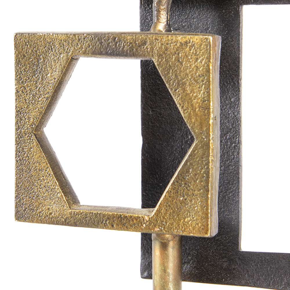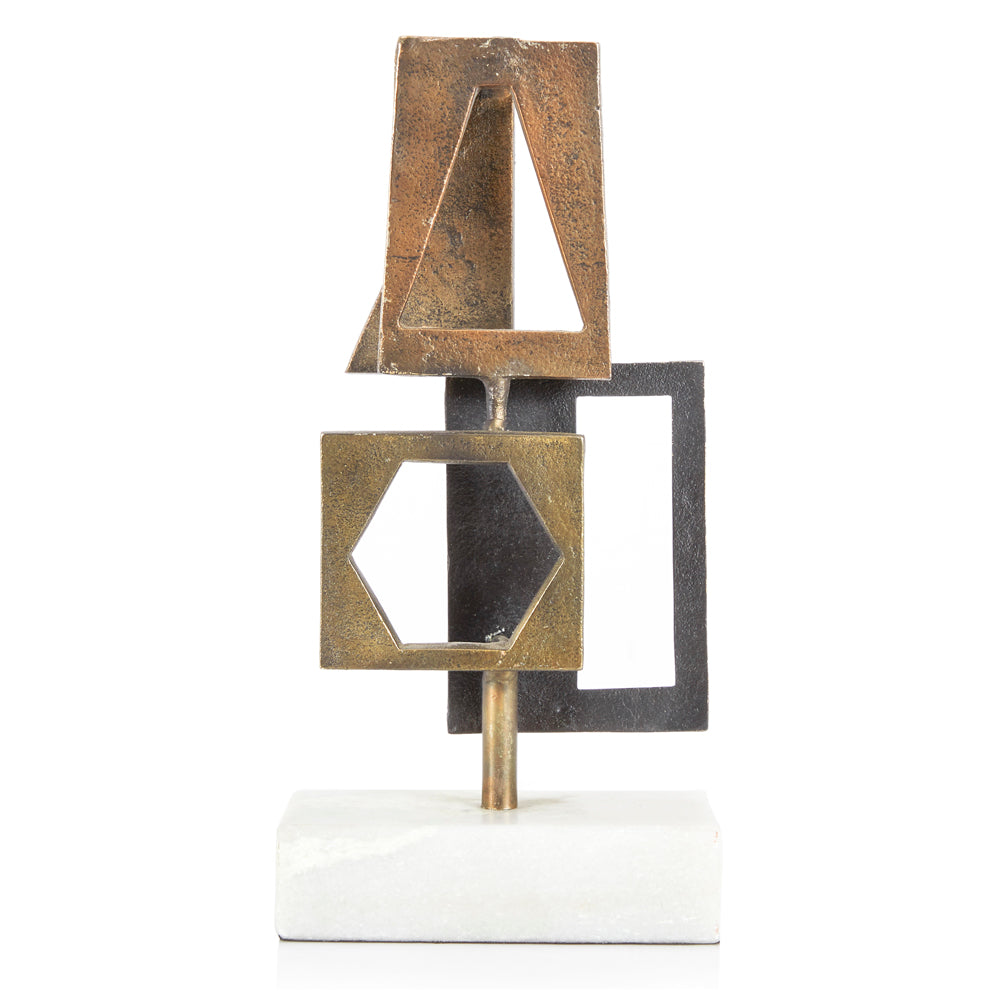 Details: Brass and black abstract metal table sculpture with marble base Dimensions: 12" H x 6" W x 3" D Quantity: 1