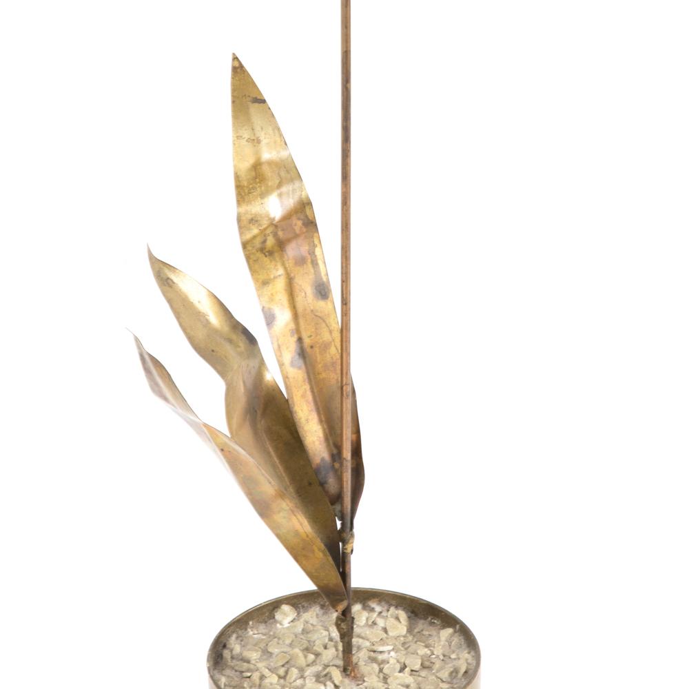 Details: Brass floor sculpture of a large daisy flower in a matching bronze pot Dimensions: 41.5" H x 10.5" W x 5" D Quantity: 1