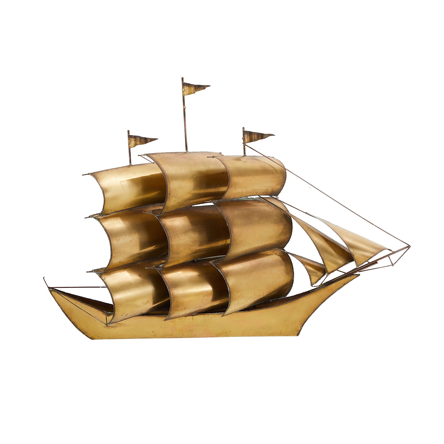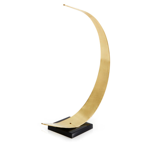 Details: Thin gold/brass metal sculpture with black base Dimensions: 20" H x 15" W x 5" D Quantity: 1