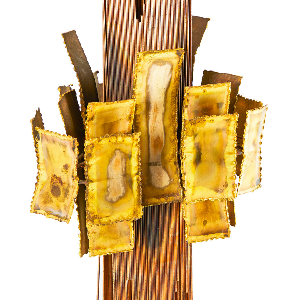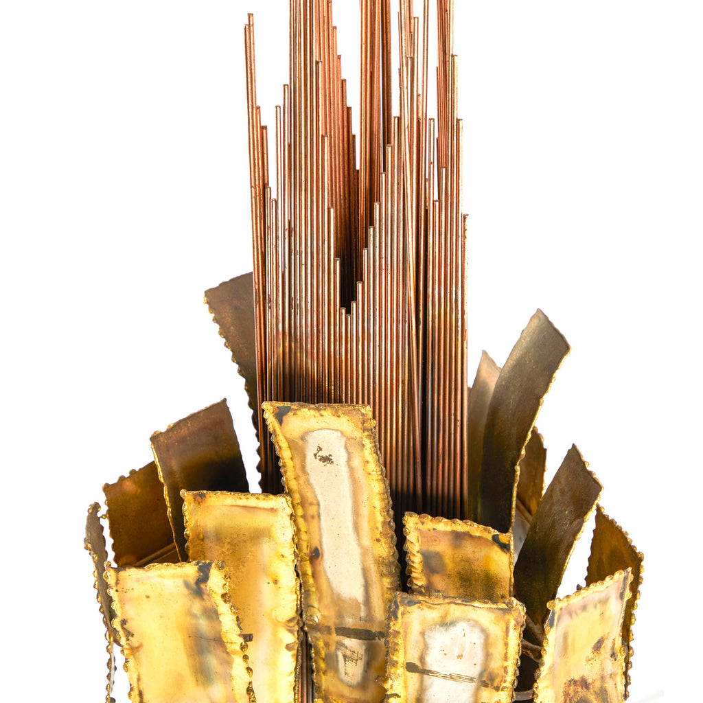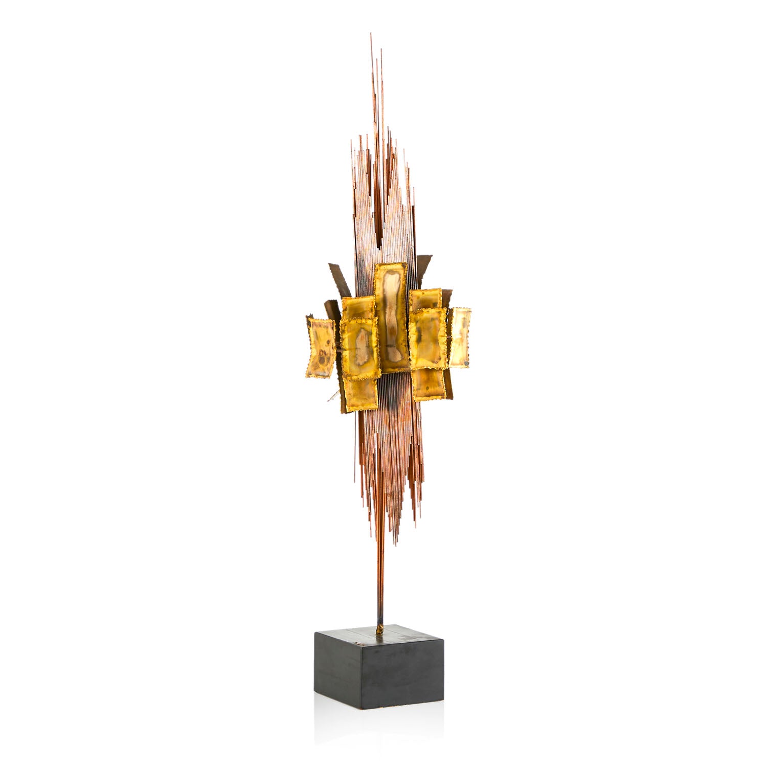 Details: Abstract metal sculpture made from copper rods and sheets of brass Dimensions: 36" H x 9" W x 8" D Quantity: 1