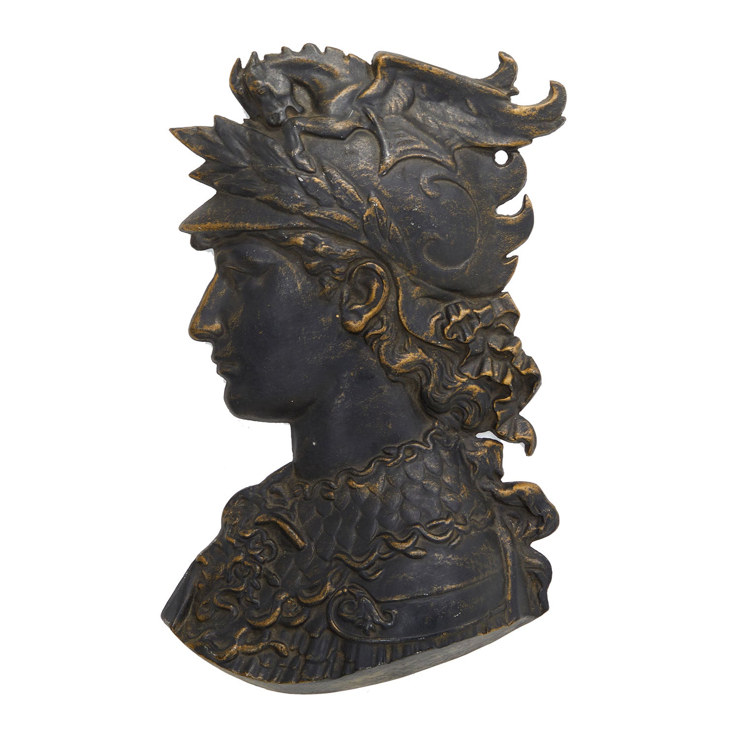 Details: Bronze metal profile bust of greek god Dimensions: 17" H x 11" W x 2" D