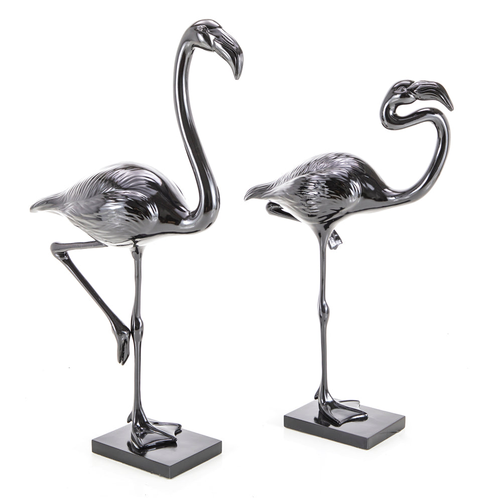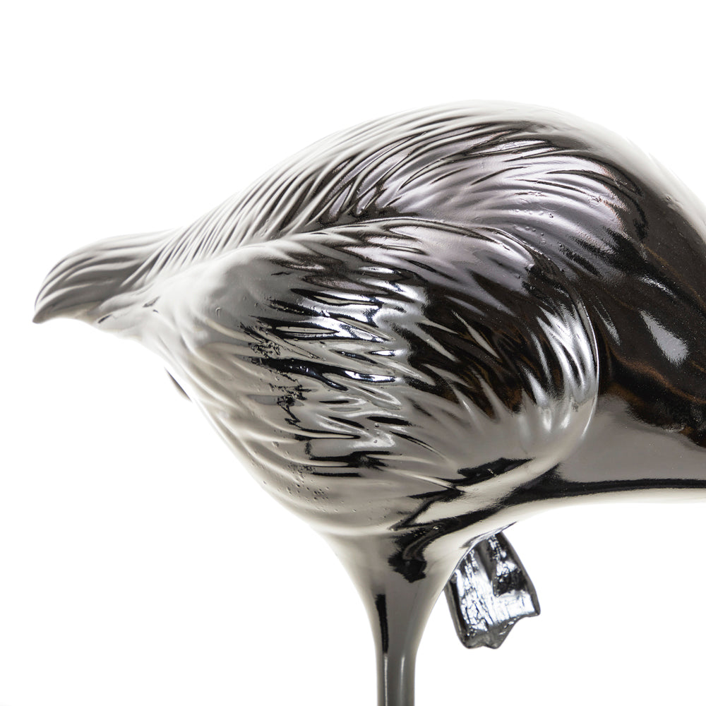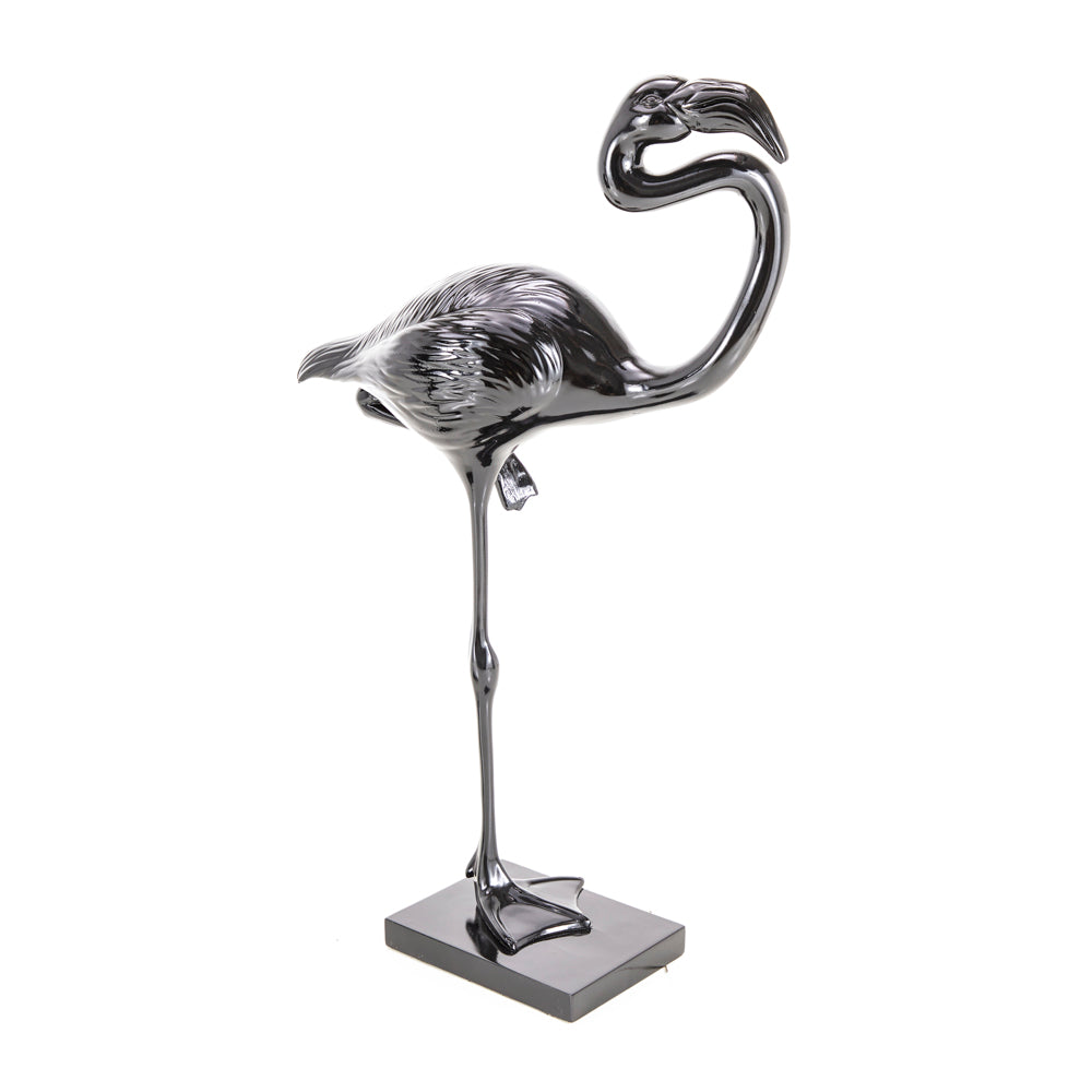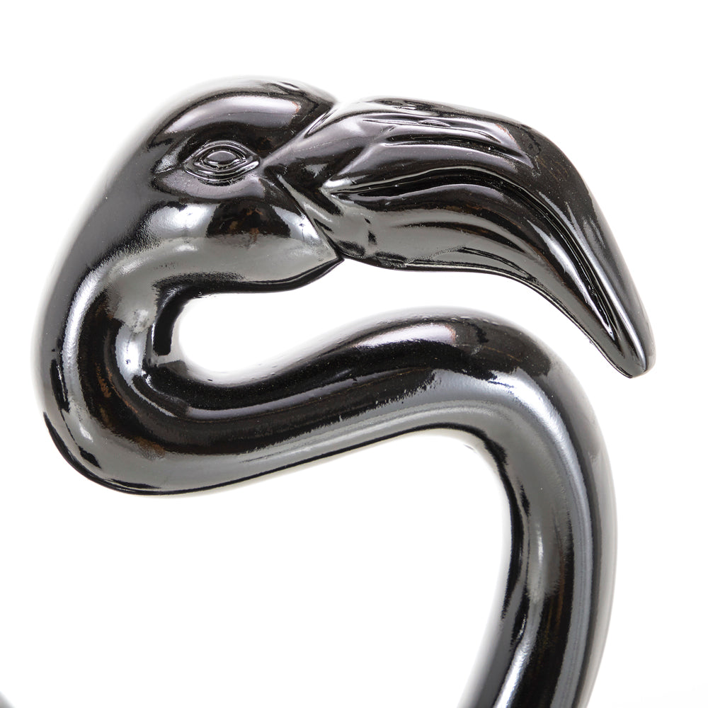 Details: Shiny black flamingo with rectangular base (part of matching pair)