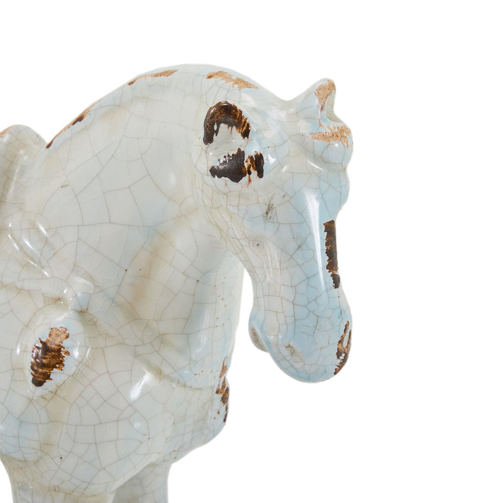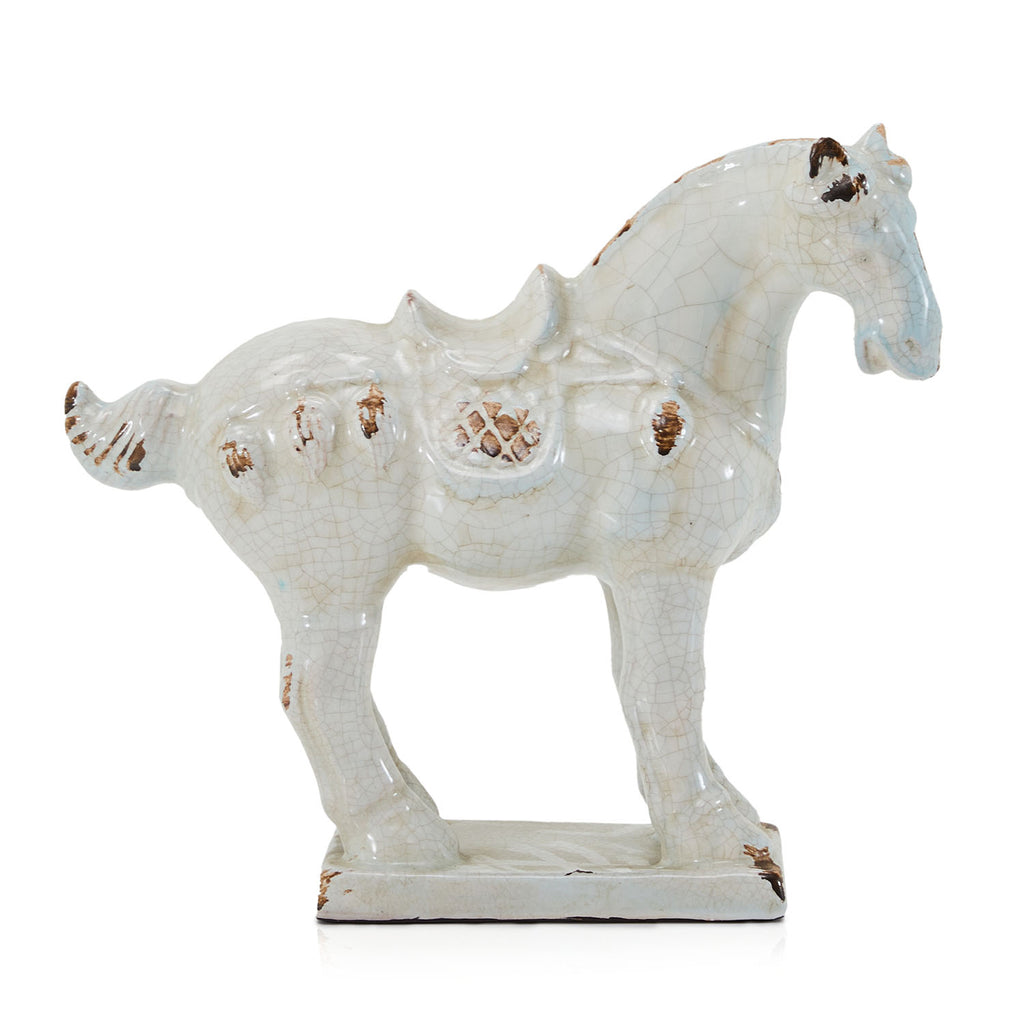 Details: Cream color crackle ceramic horse sculpture with some bronze spots