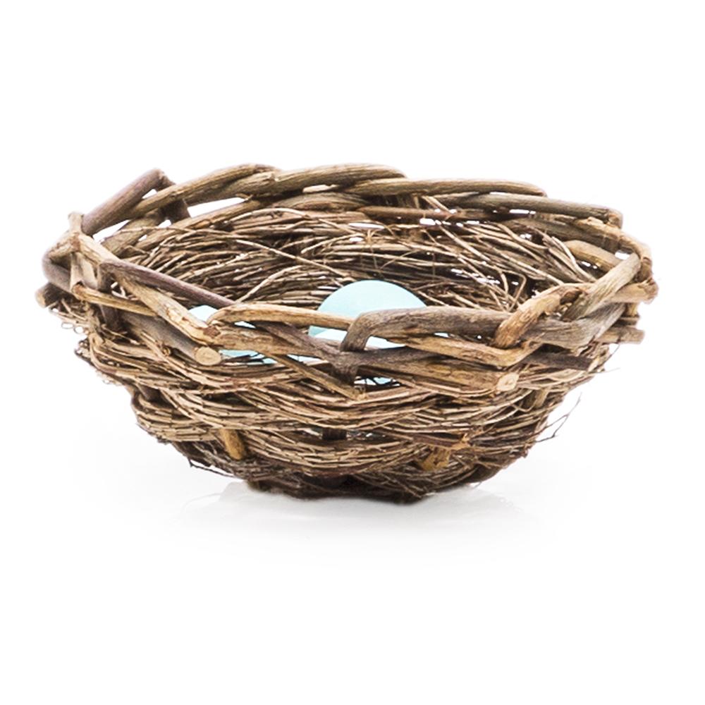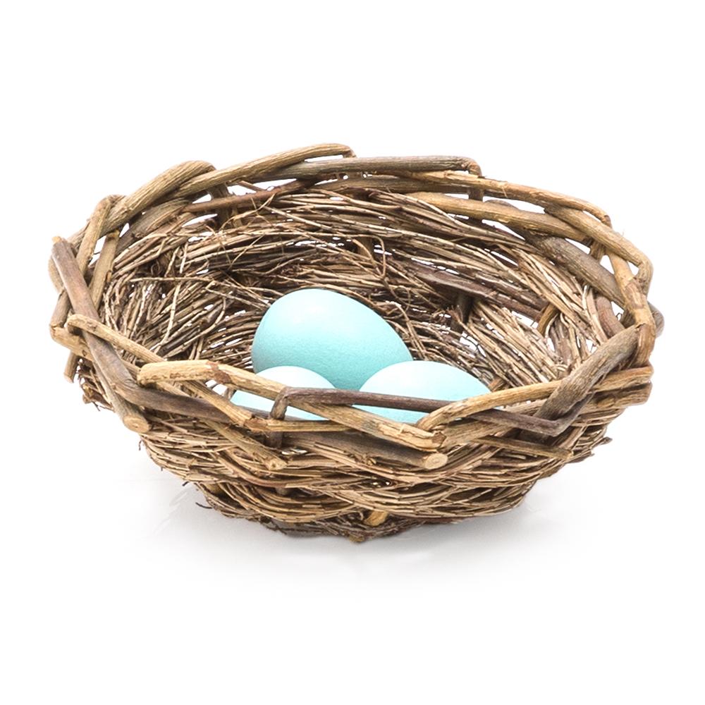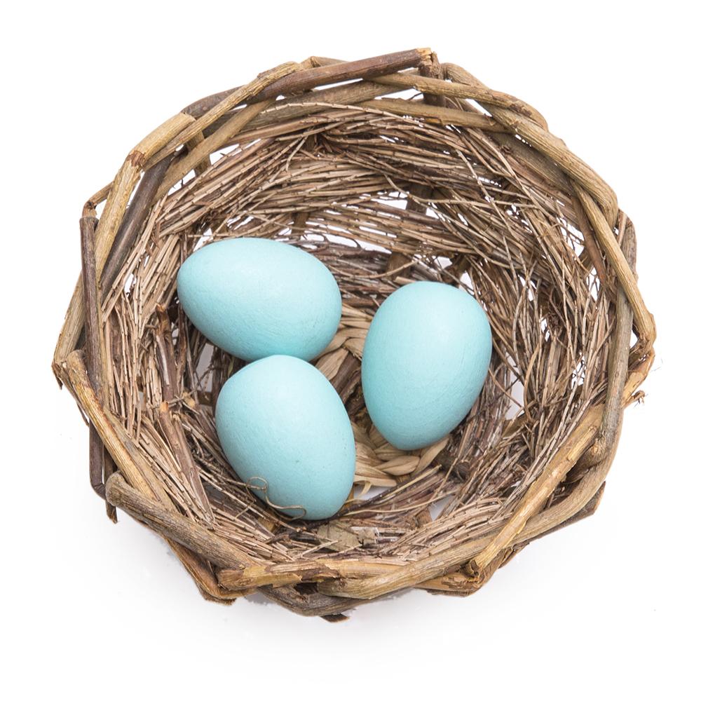Details: Birds nest made from twigs/wicker with blue eggs.