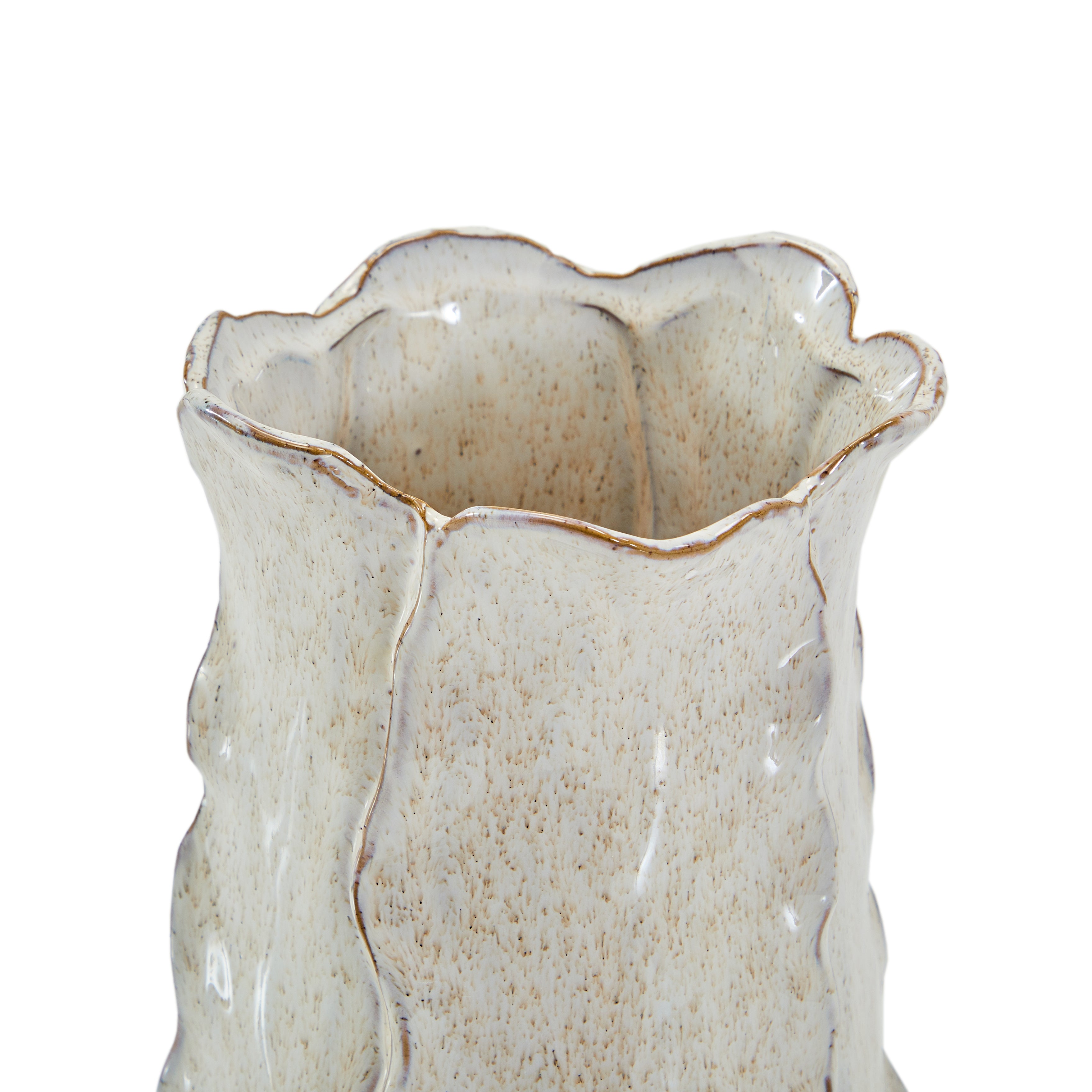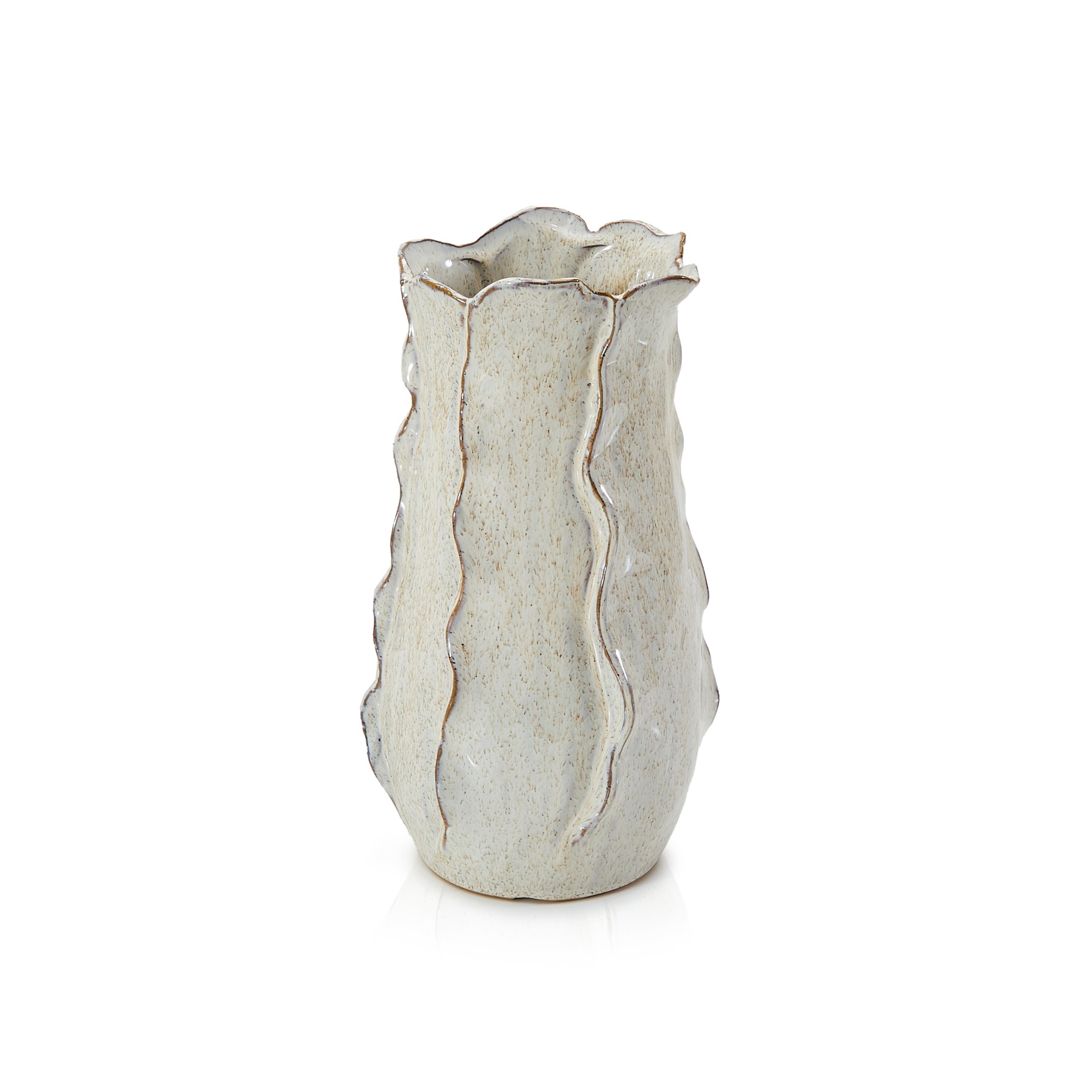 Details: White ceramic planter shaped like a tulip with light brown flecks
