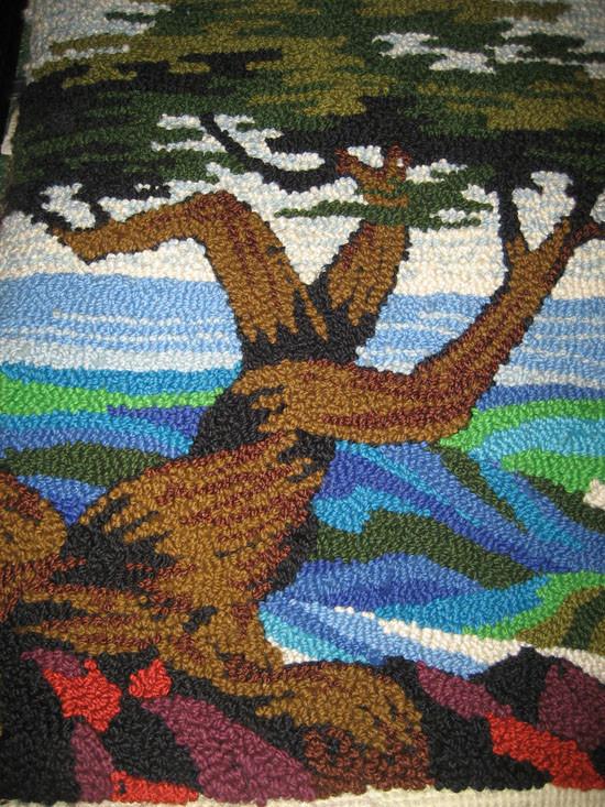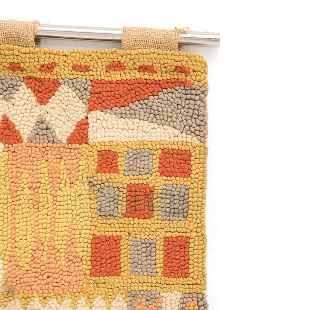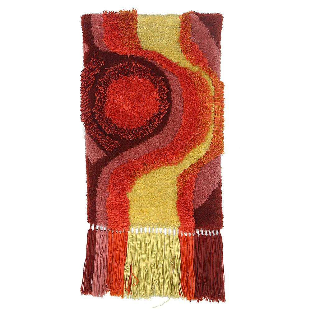 flames, fabric, vintage, yarn, woven, stretched rug artwork Dimensions: 60" H x 48" W x 2" D