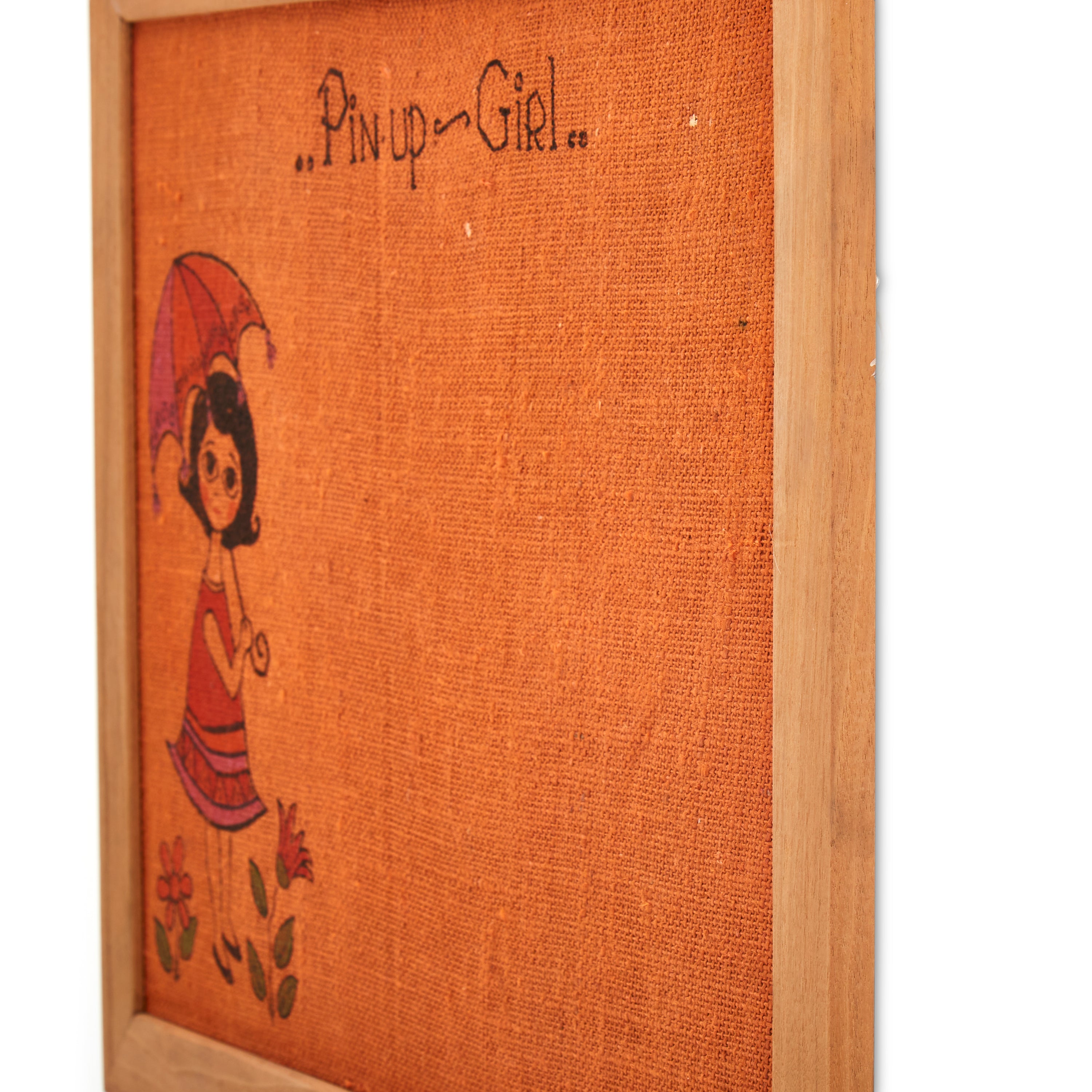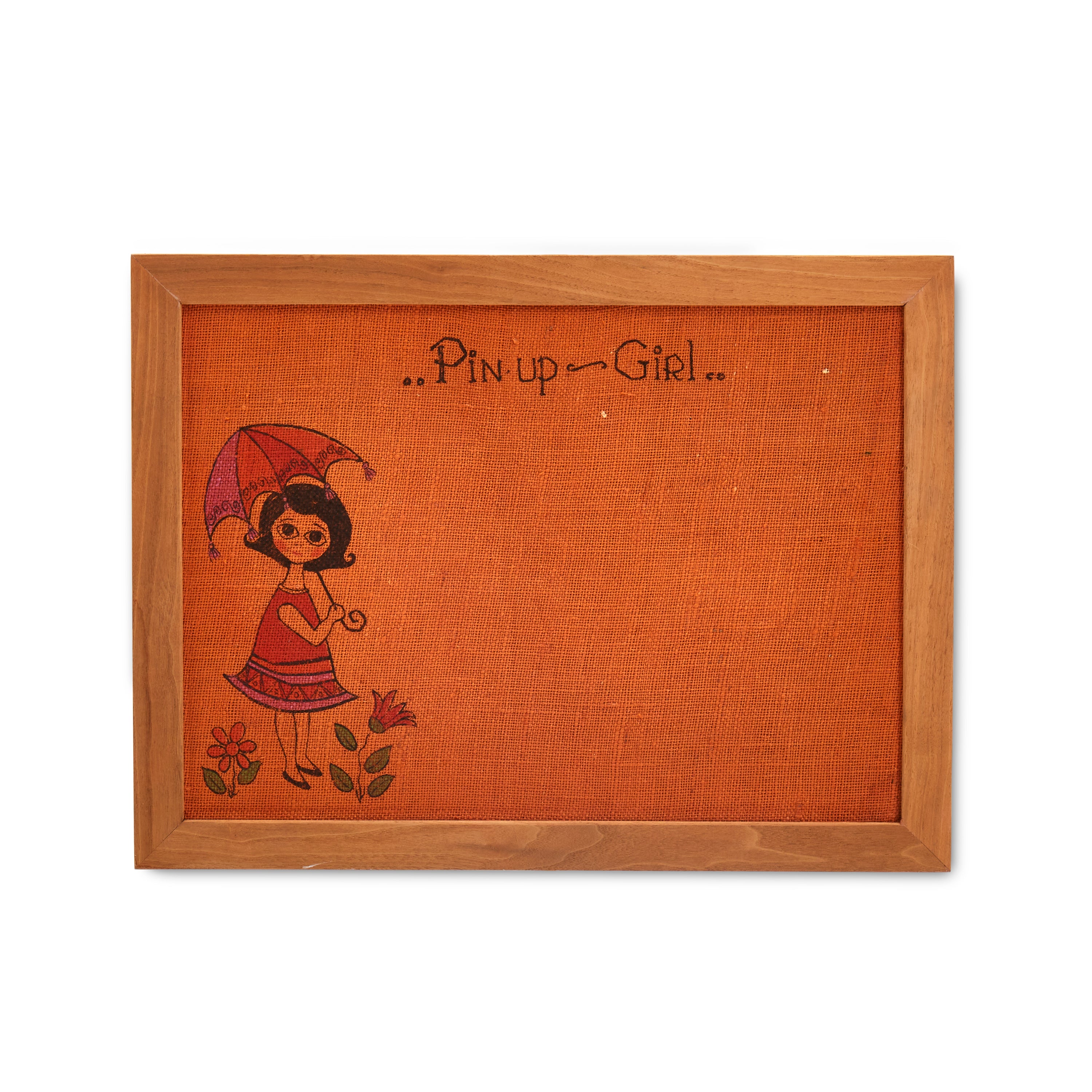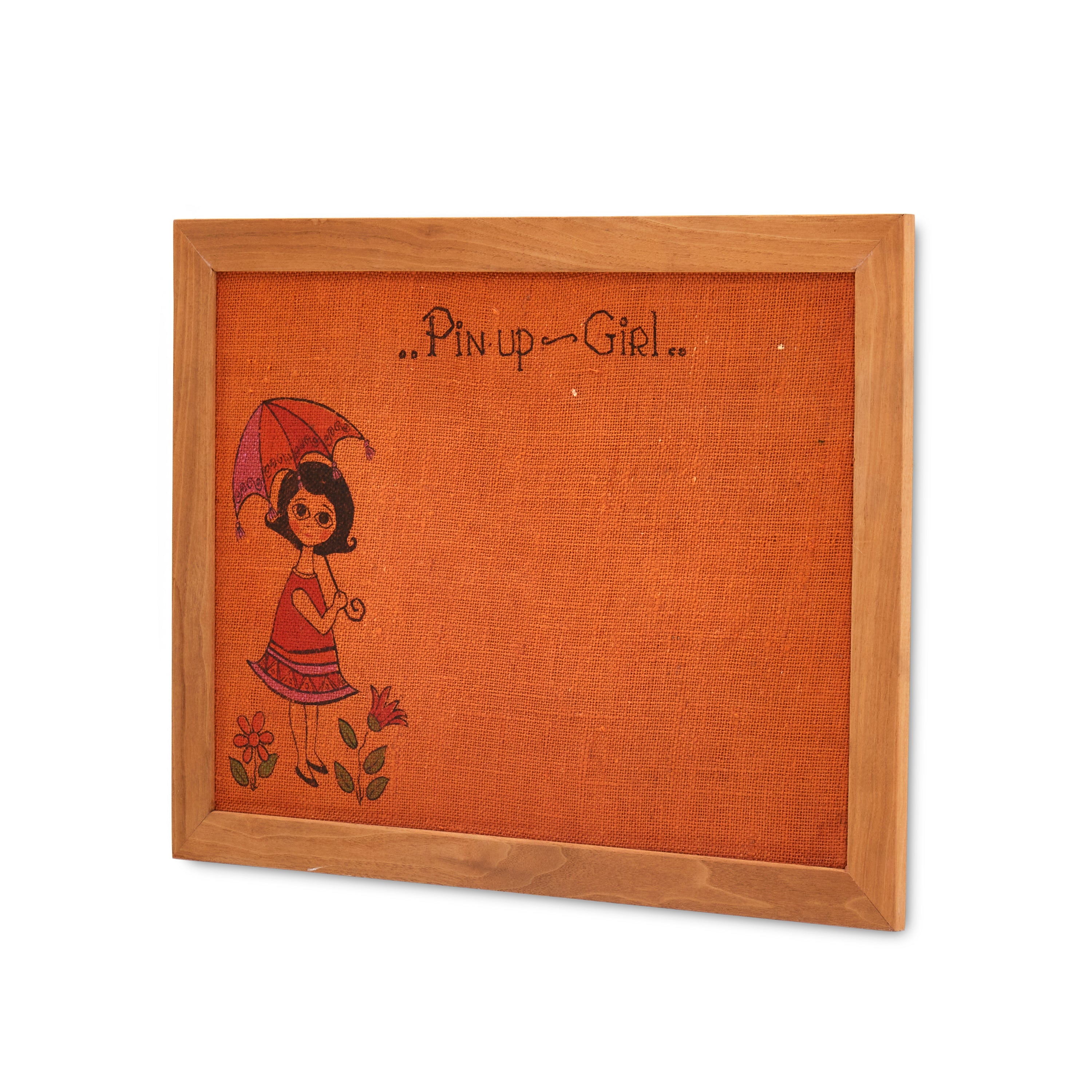 Details: "Pin Up Girl" Pin board with illustration of girl holding umbrella. Dimensions: 18" H x 24" W