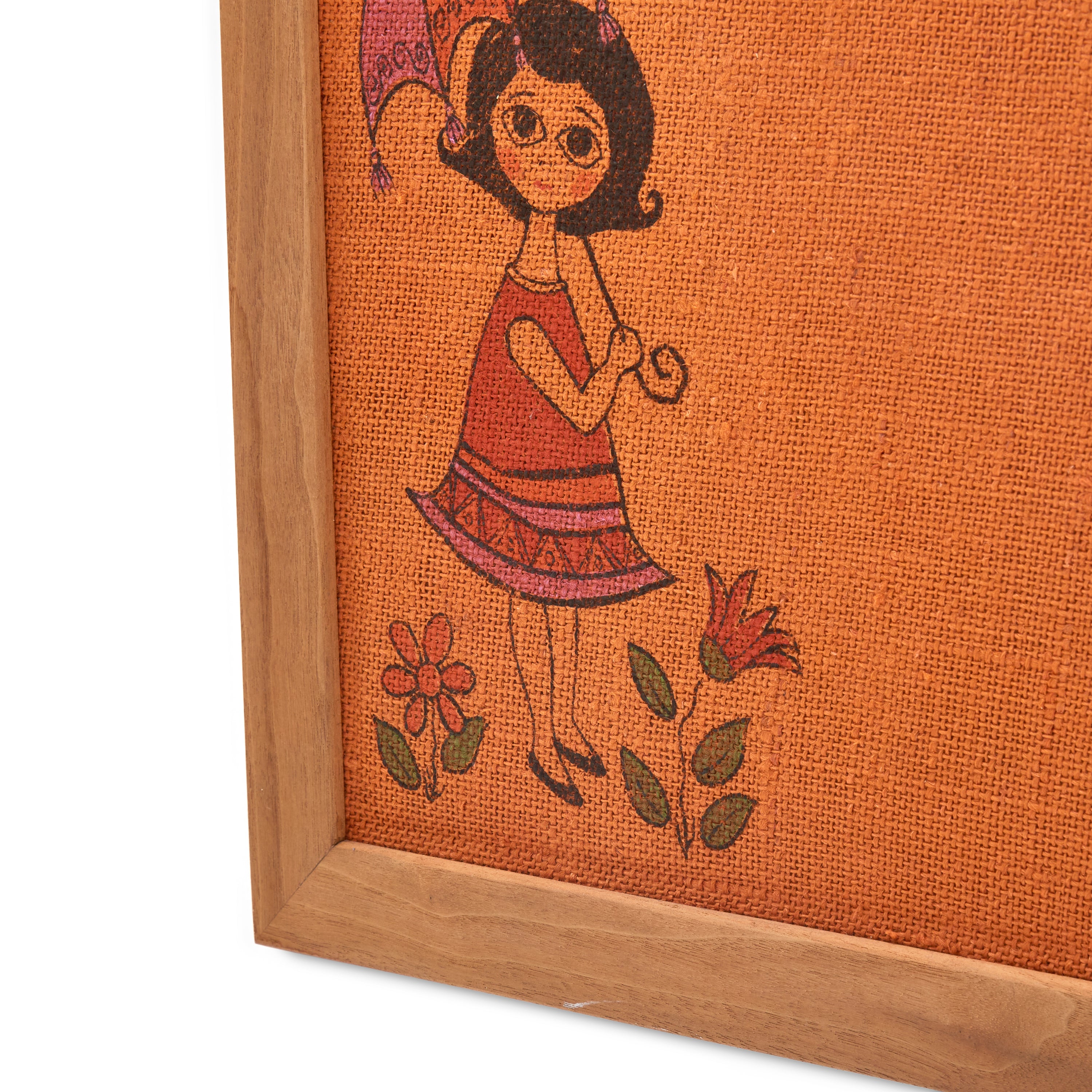 Details: Orange fabric pinboard with silkscreen bees and flowersDimensions: 24" H X 18" W