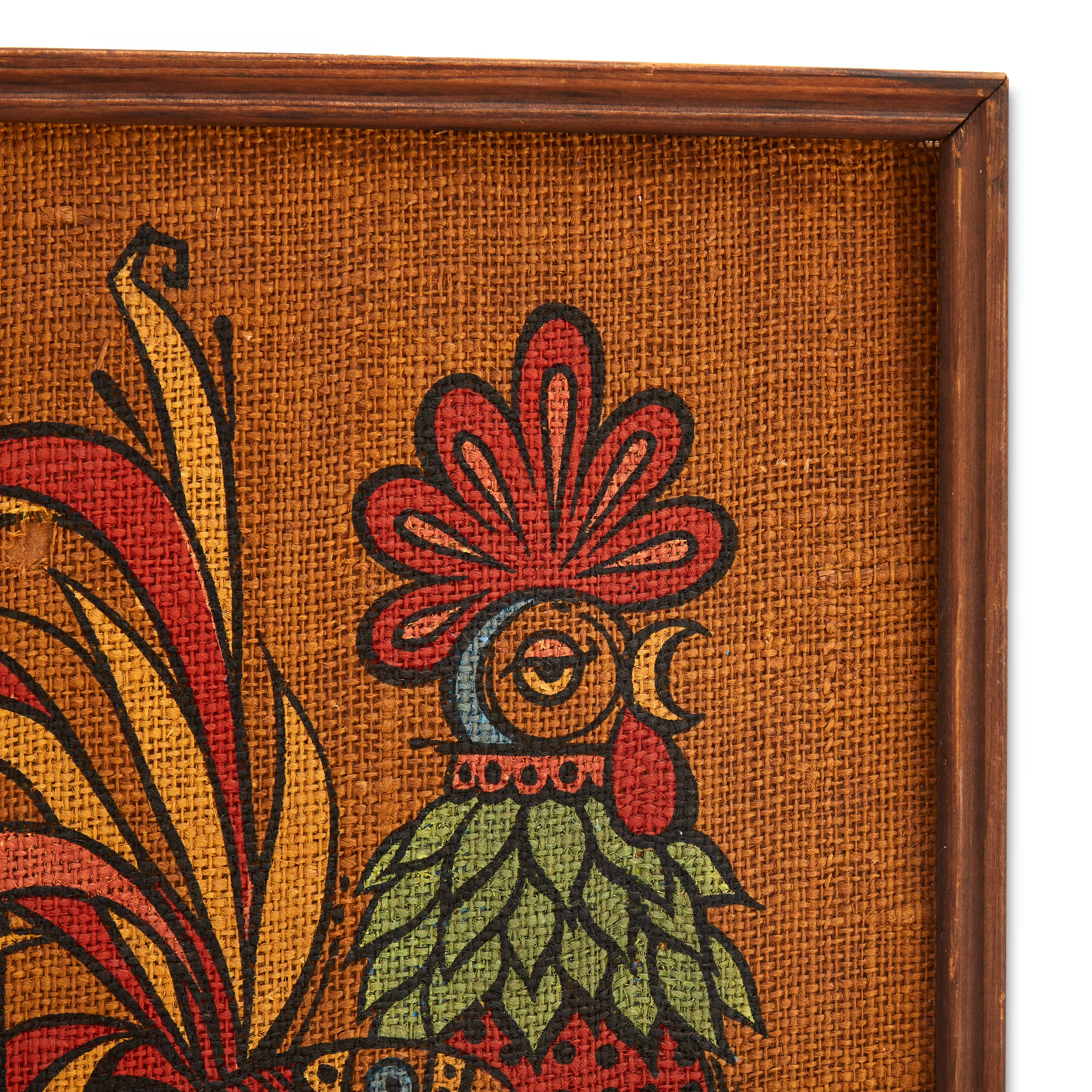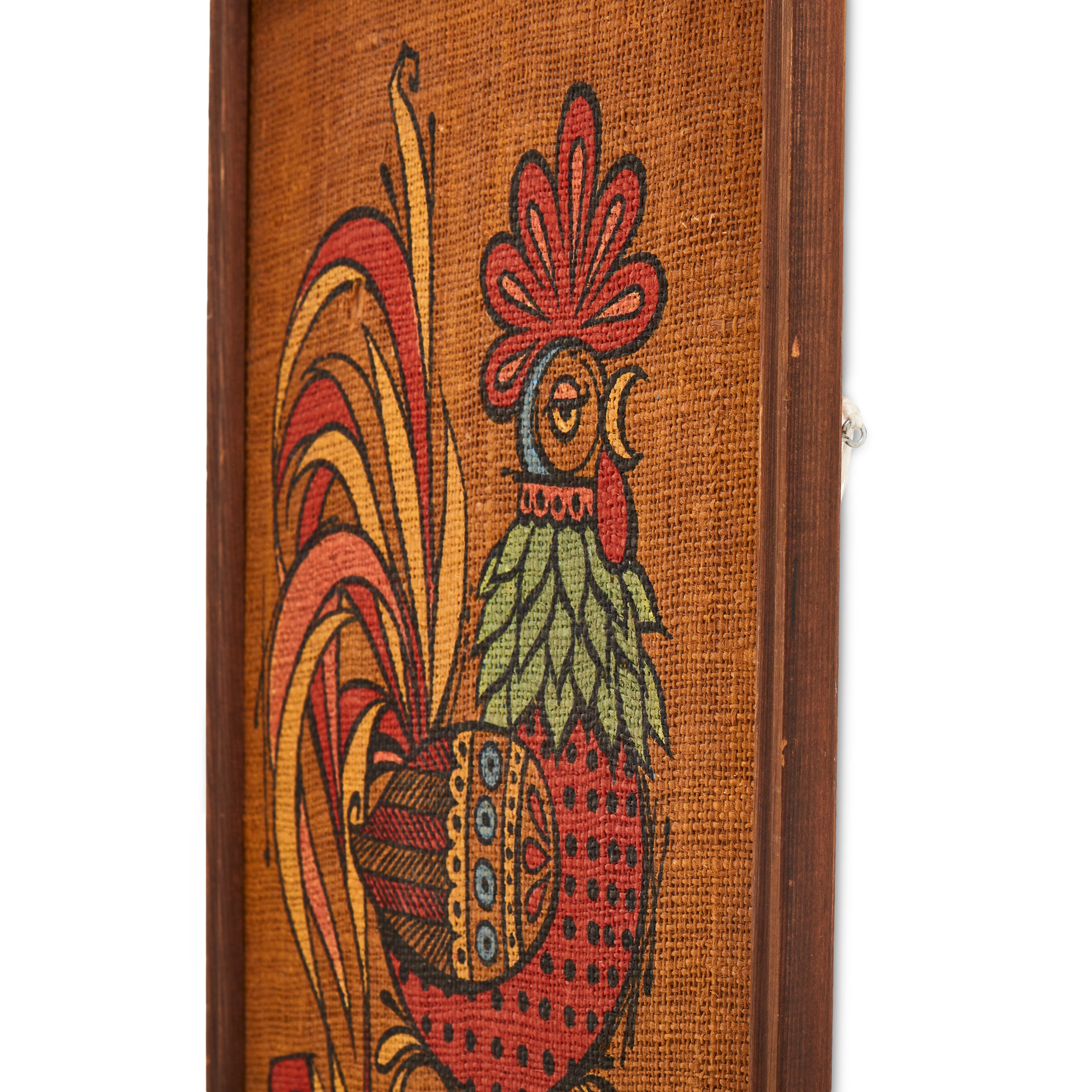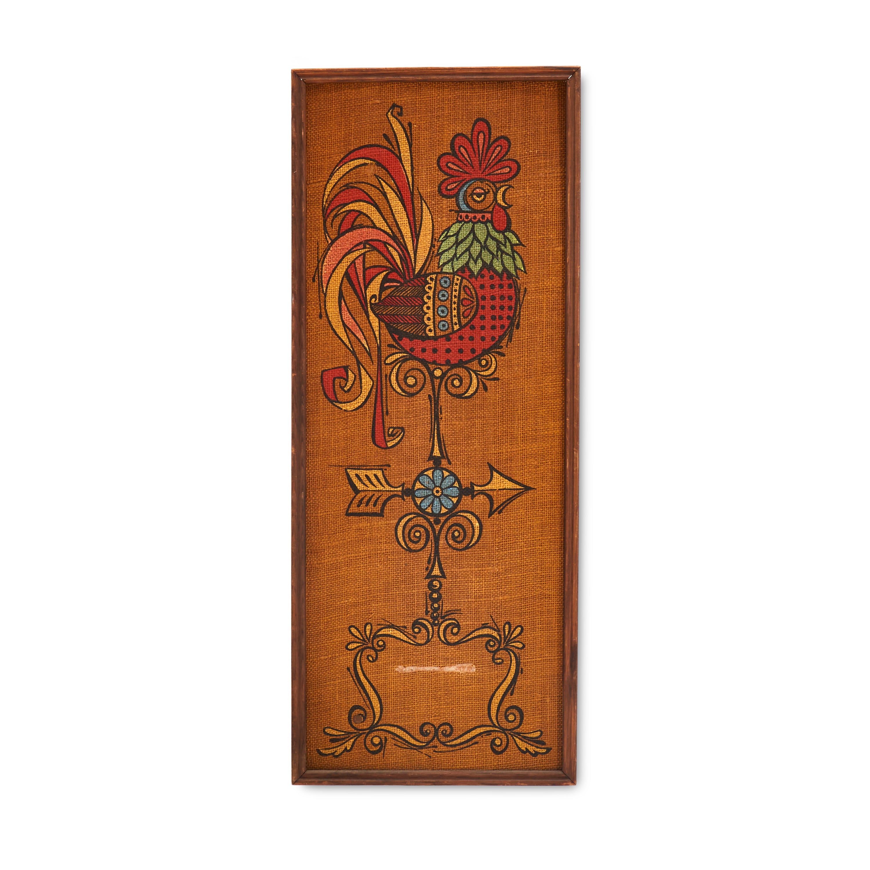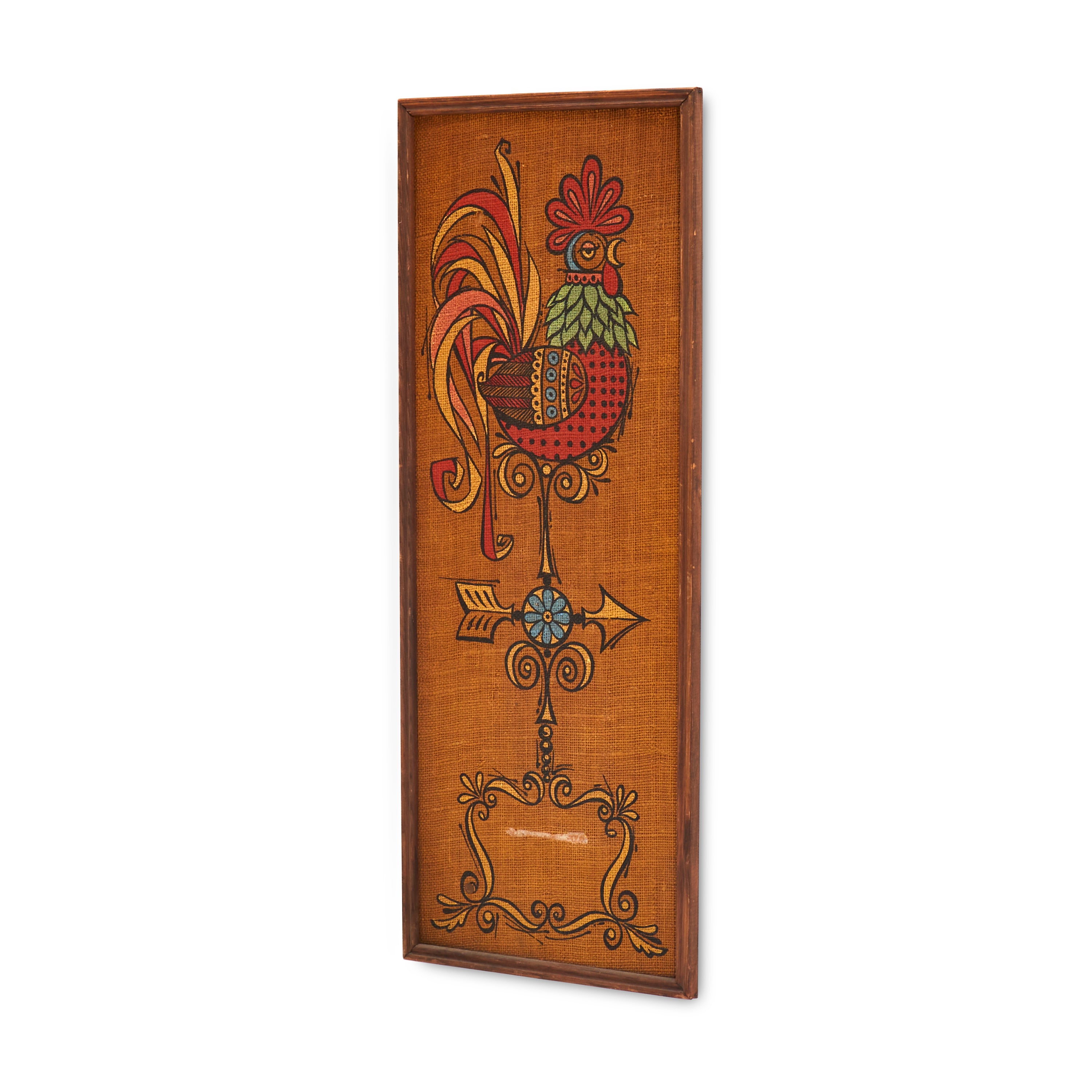 Details: Vintage pin board featuring silkscreen rooster on orange fabric Dimensions: 30" H x 12" W