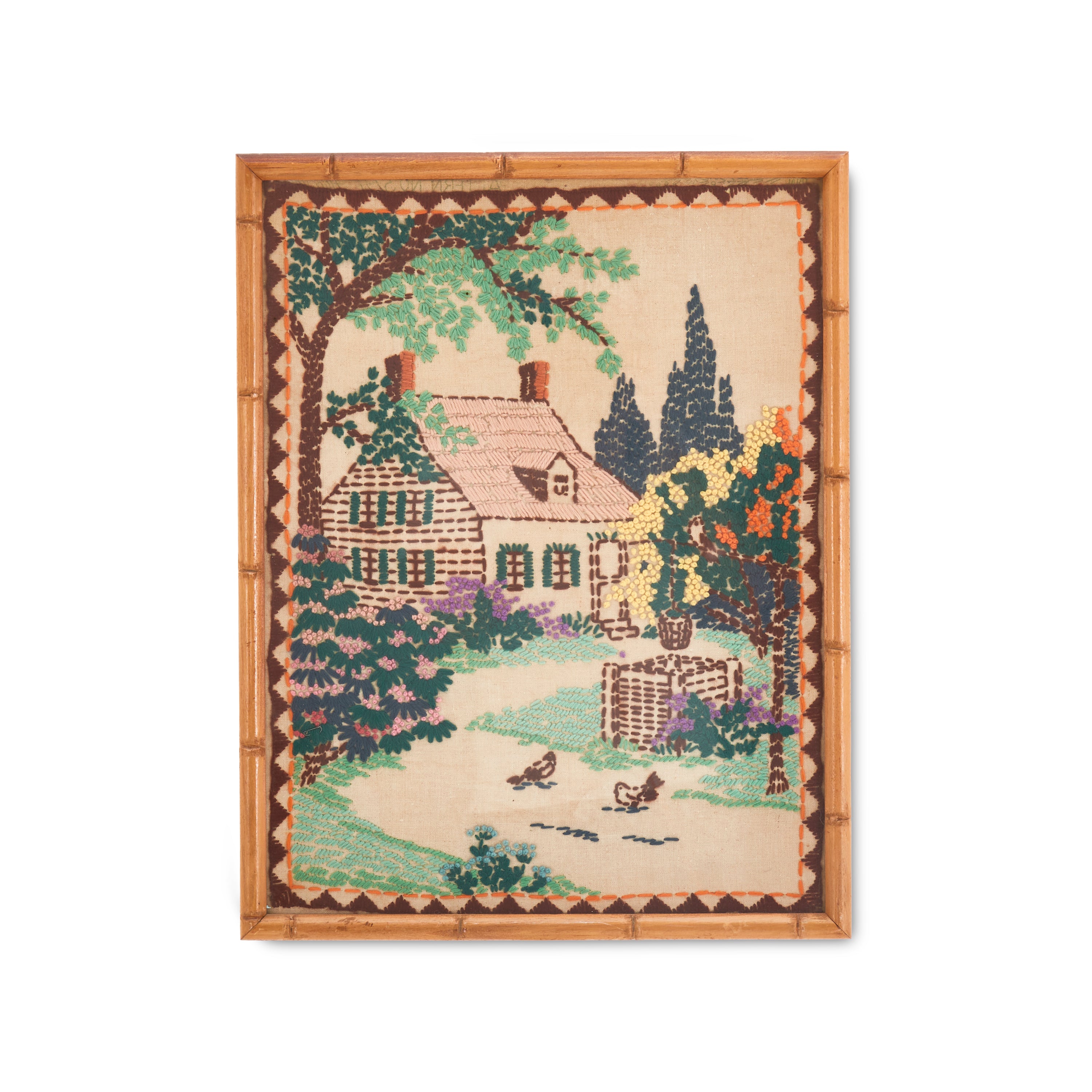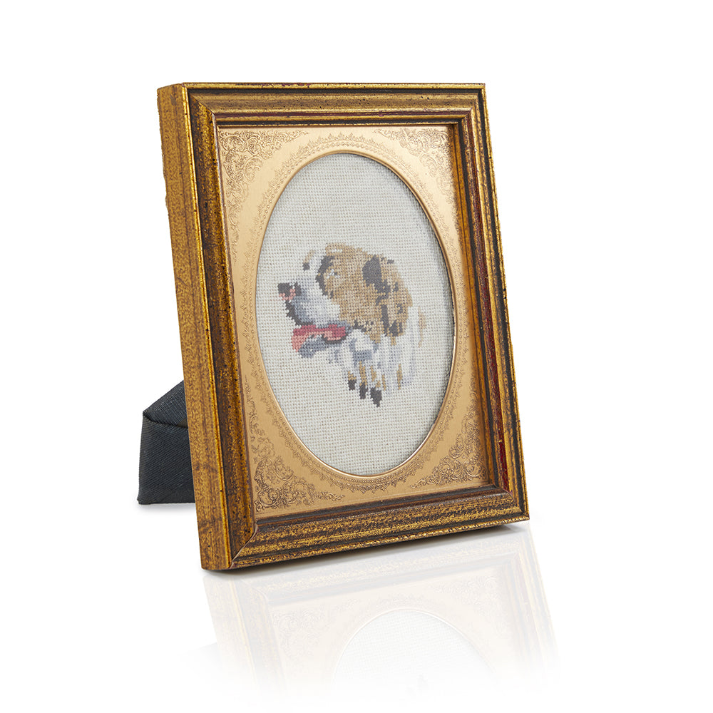 Details: Paint by Numbers artwork of a panting shepherd dog in profile with a green background and a brown wood grain frame Dimensions: 13" H x 11" W x...
