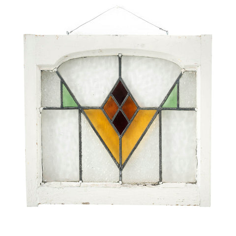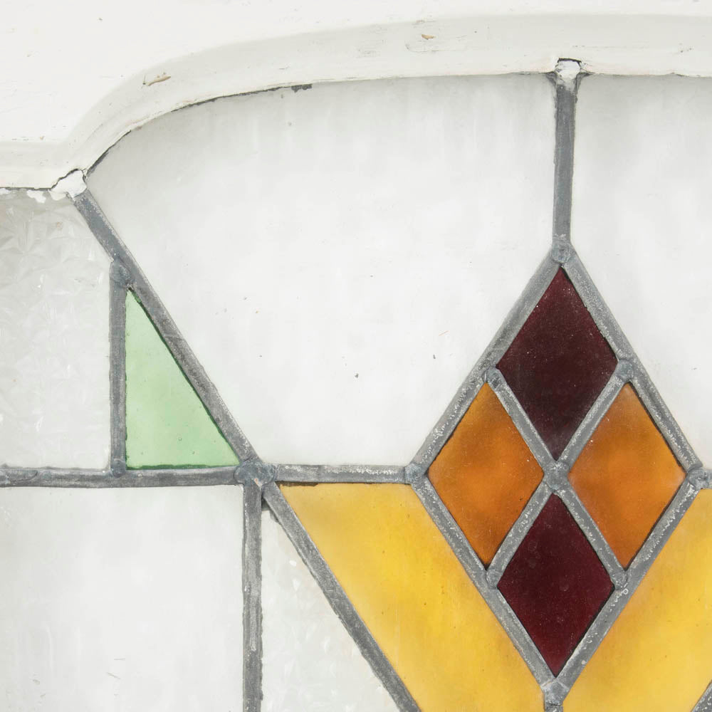 Details: Decorative stained glass, white wooden frame Details: 21"H x 23"W x 2"D