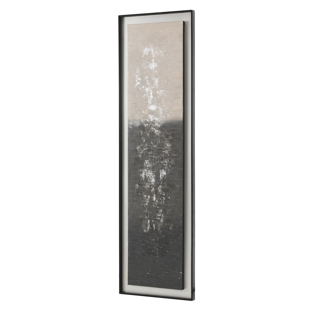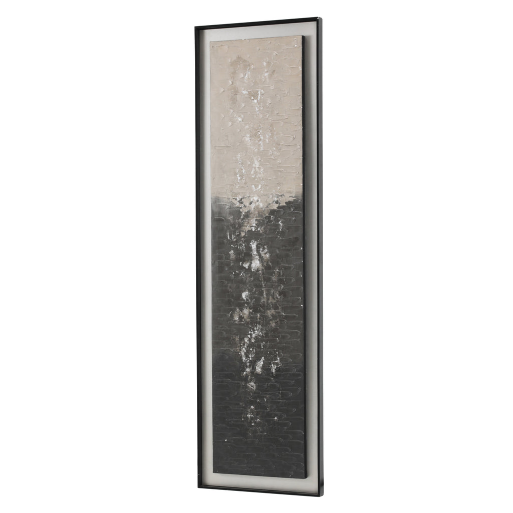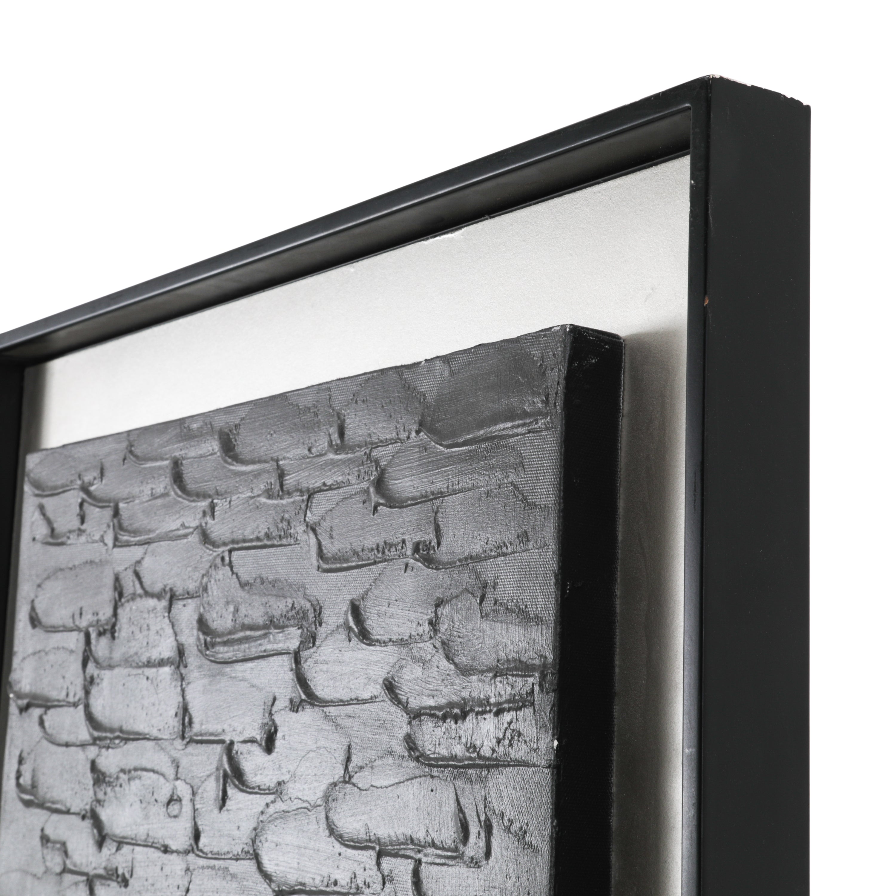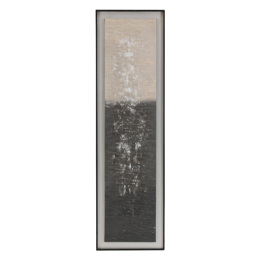 Details: Blue Cadillac-style car driving through an oil-painted California street. Black Wood Frame. Dimensions: 15" H x 15" W Pairs with: 1384 (A+D) Colorful Auto Red (rented...