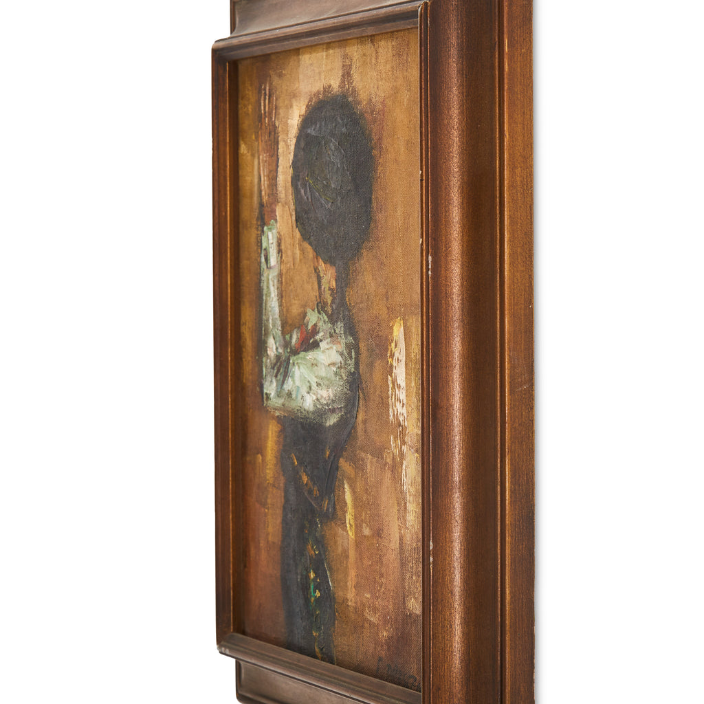 Details: Red Cadillac-style car driving through an oil-painted California street. Black Wood Frame. Dimensions: 15" H x 15" W Pairs with: 1385 (A+D) Colorful Auto Blue (rented...