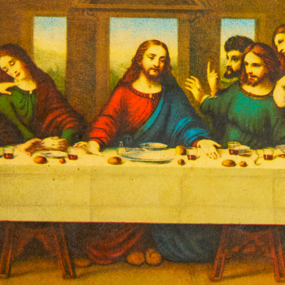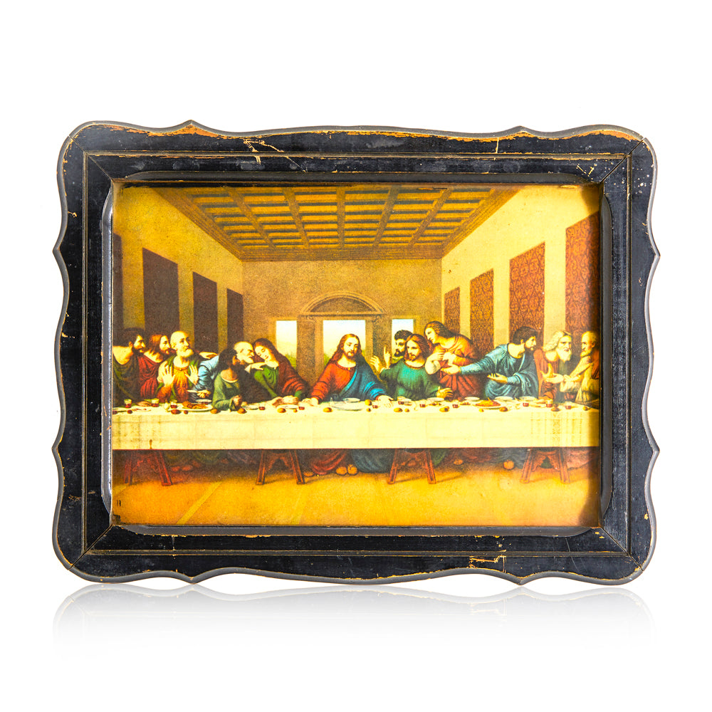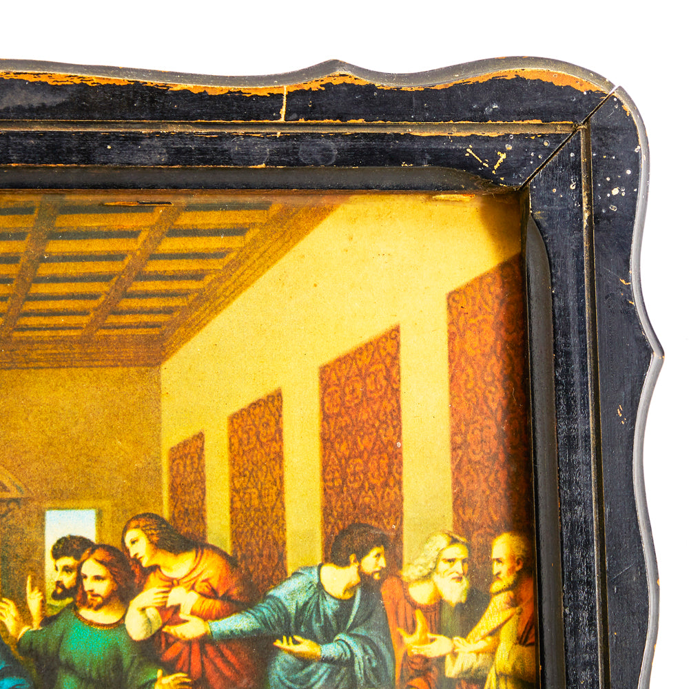 Details: Print of da Vinci's Last Supper painting with black wooden frame
