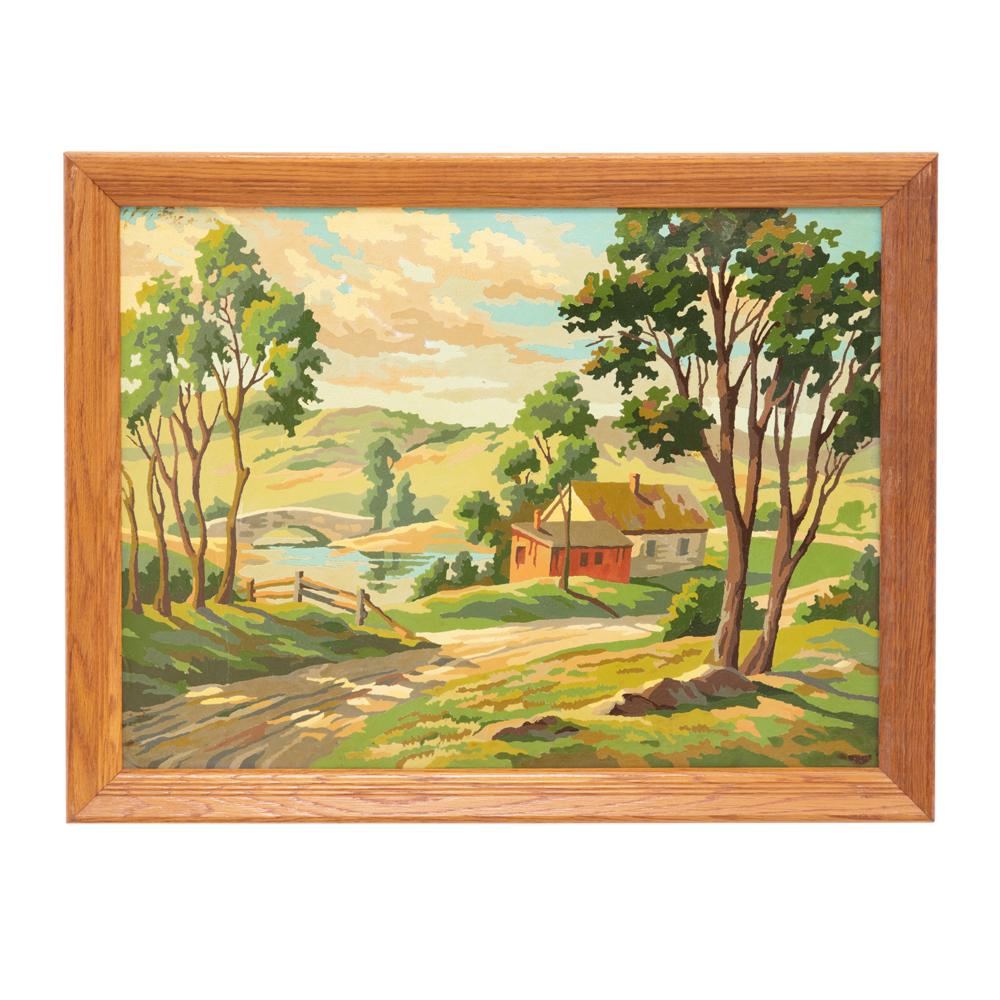 Details: Paint by Numbers artwork of a country road lake Dimensions: 27" W x 21" H Quantity: 1