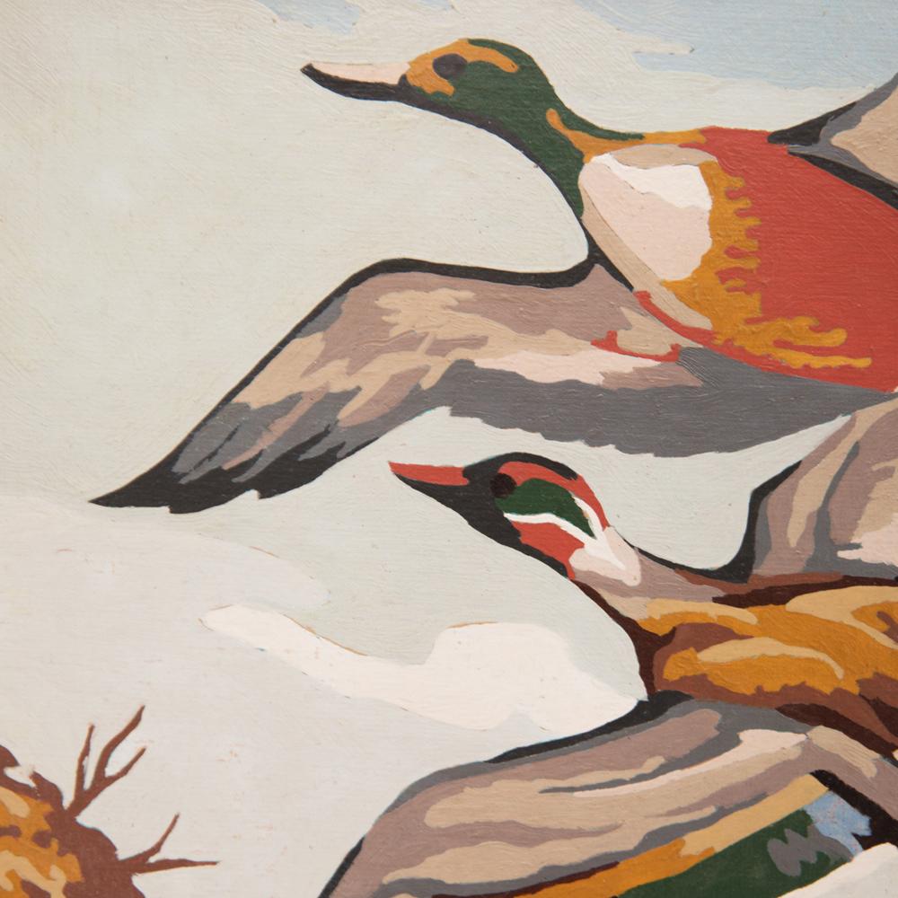 Details: Paint by Numbers artwork of ducks flying northeast Dimensions: 16" W x 12" H Quantity: 1