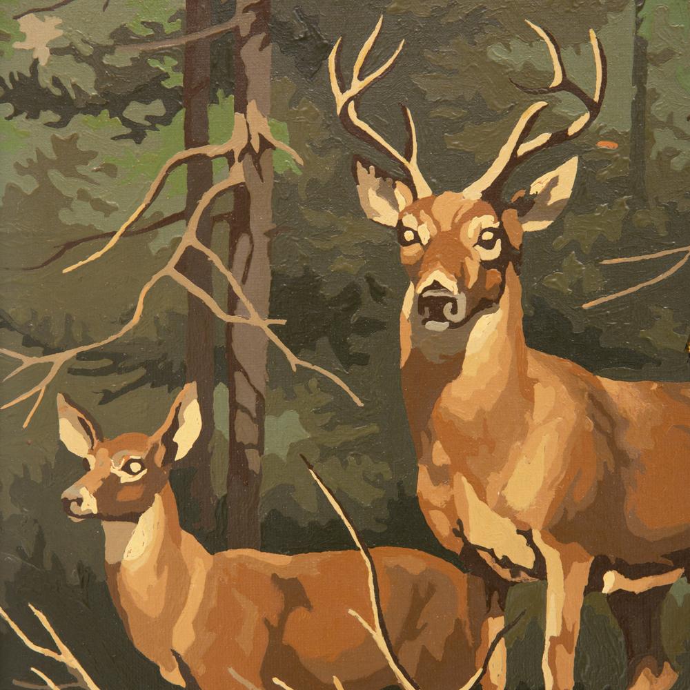 Details: Paint by numbers artwork of two deer Dimensions: 13" W x 17" H Quantity: 1