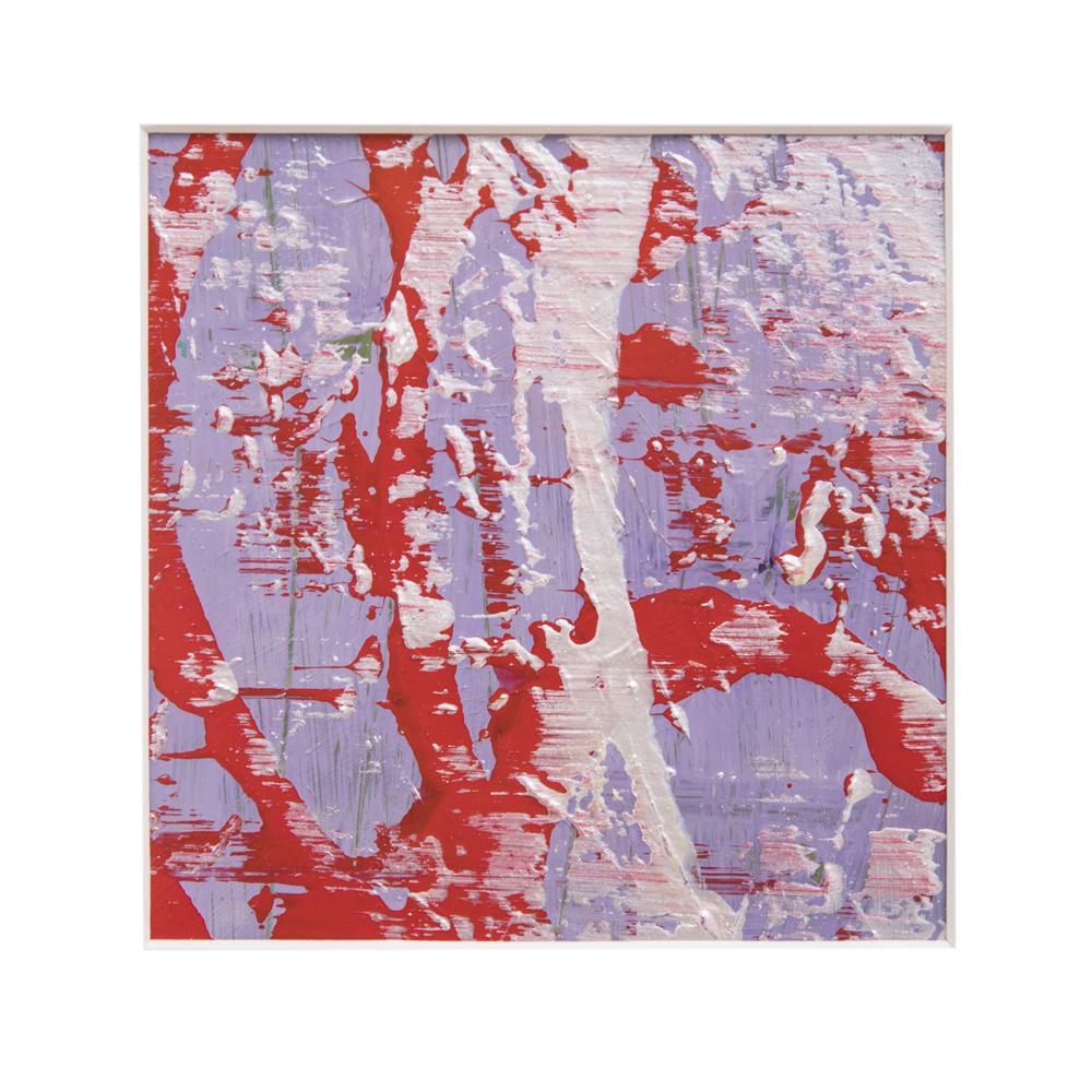 Details: Abstract red and purple painting. Dimensions: 13.5" x 13.5"