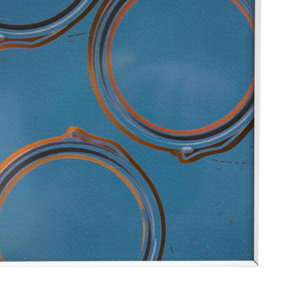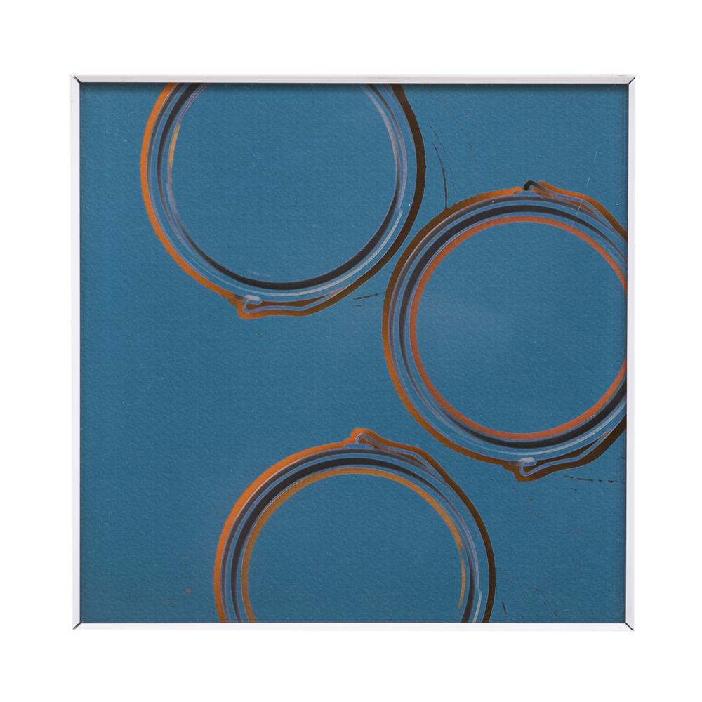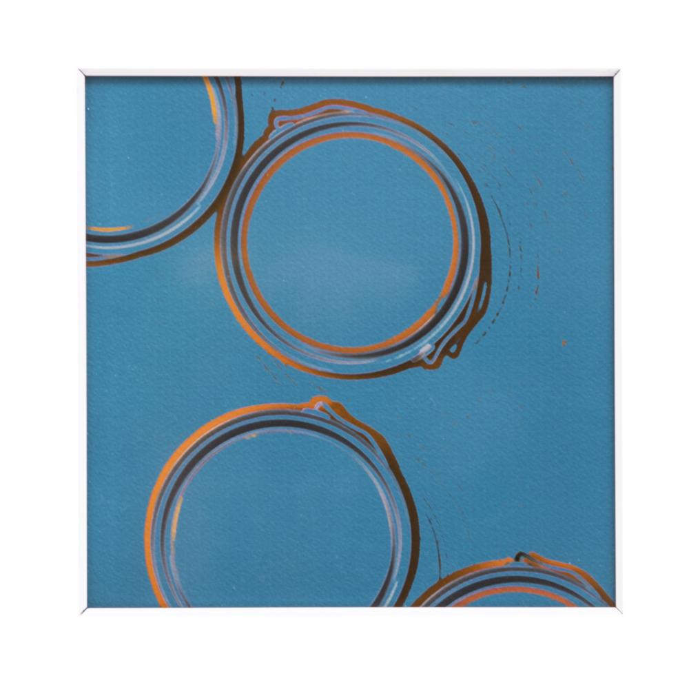 Details: Abstract painting of paint cans on turquoise. Dimensions: 8" x 8"