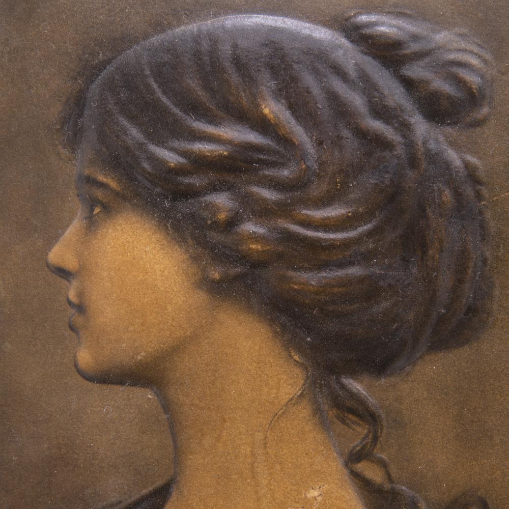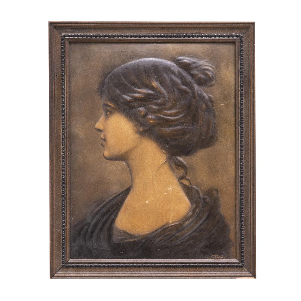 Details: Abstract painting of a woman in vintage metal frame. Dimensions: 8" x 10"