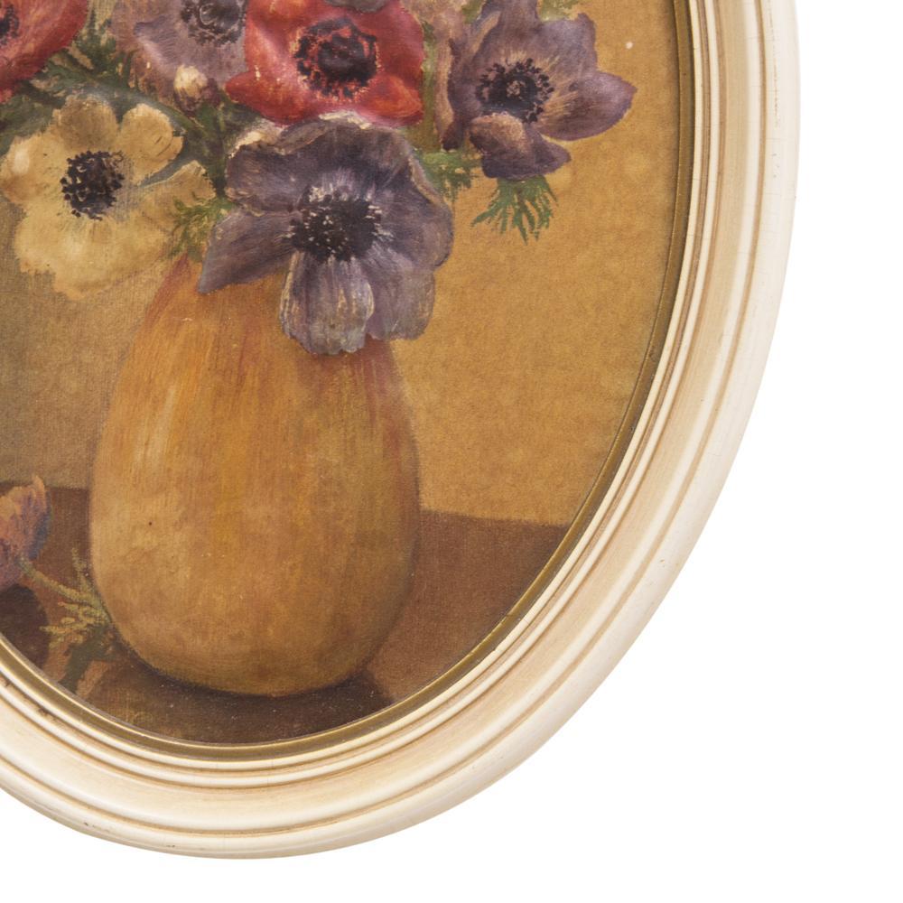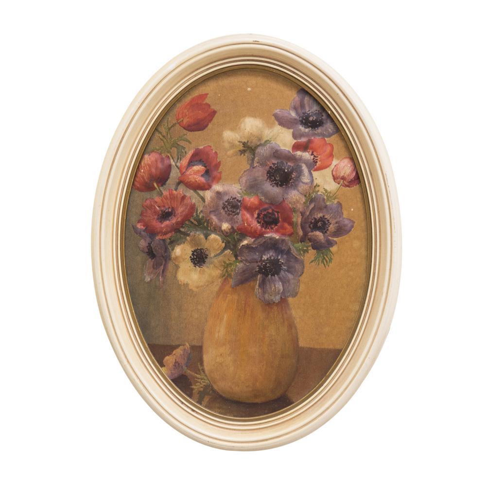Details: Antique oval frame with flowers inside. Dimensions: 9.5” x 12.5”
