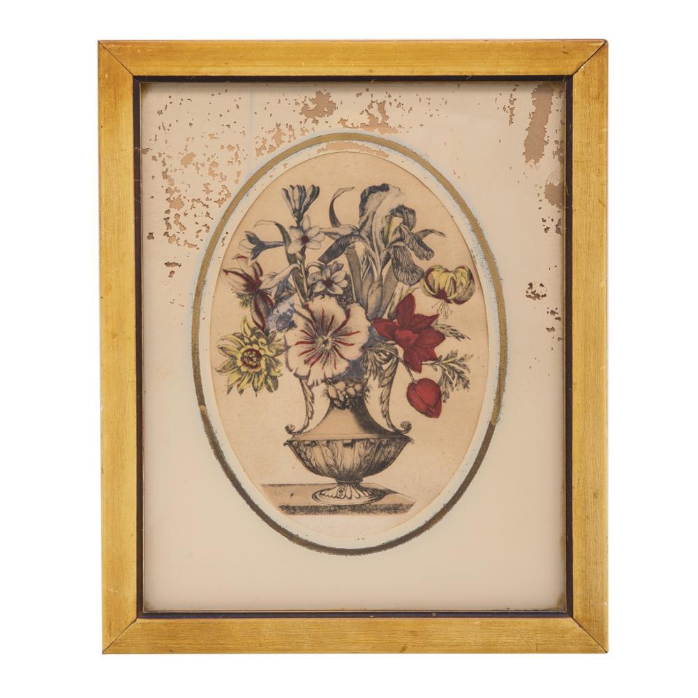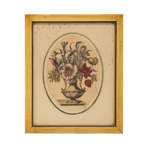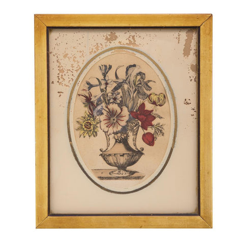 Details: Frame with antique oval floral print. Dimensions: 9.25” x 11.25”